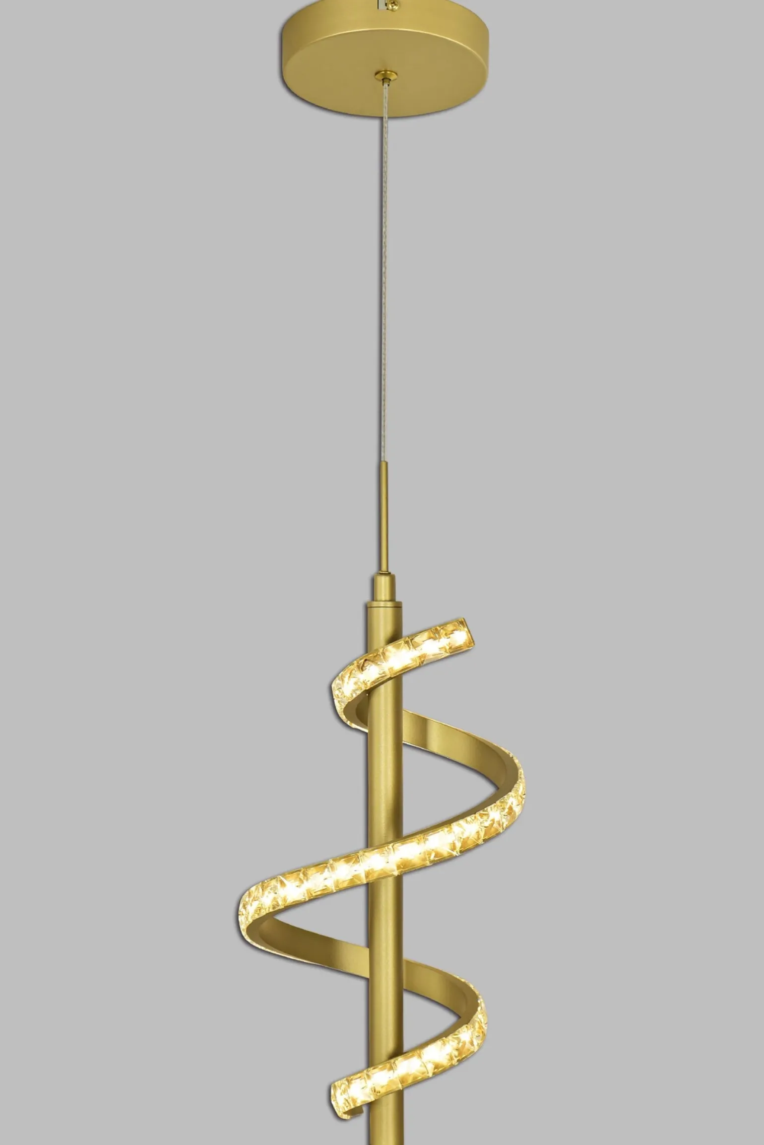 Wykonana z wysokiej jakości materiałów, lampa wisząca CLARET charakteryzuje się dekoracyjnymi kryształami, które odbijają światło w niezwykle efektowny sposób. Jej spiralny kształt przyciąga wzrok i nadaje przestrzeni nowoczesny wygląd, a zastosowanie kryształów dodaje całości elegancji. Dzięki temu produkt jest nie tylko źródłem światła, ale także spektakularnym elementem dekoracyjnym.