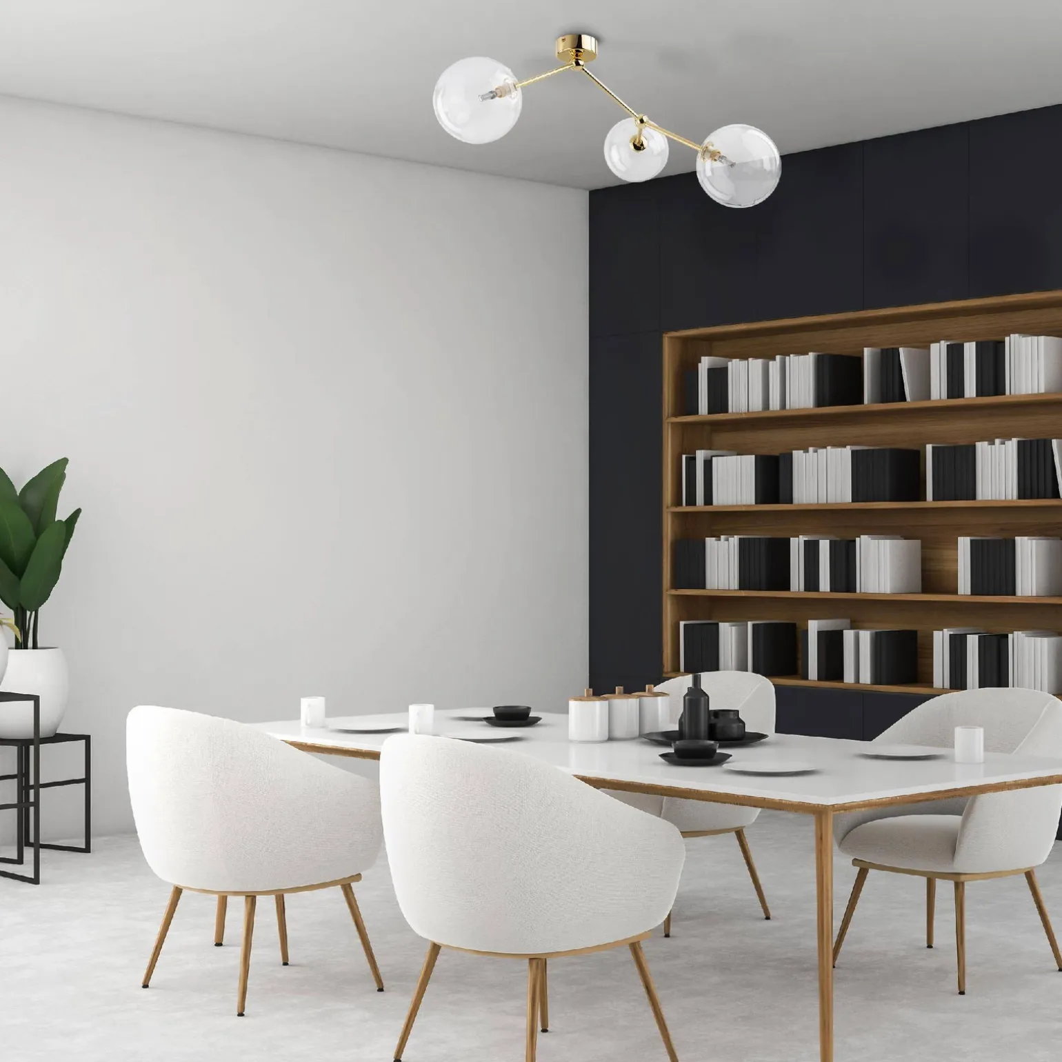 Wykonana z połączenia metalu i szkła, FAIRY GOLD LAMPA SUFITOWA wyróżnia się nowoczesnym designem oraz trwałością materiałów. Ten rodzaj lamp sufitowych idealnie sprawdzi się zarówno w klasycznych, jak i nowoczesnych aranżacjach. Transparentny klosz pozwala na piękne rozpraszanie światła, co dodatkowo podkreśla wyjątkowy klimat w jadalni. Kule i molekuły, które budują tę lampę, dodają jej artyzmu i nowoczesnej elegancji.