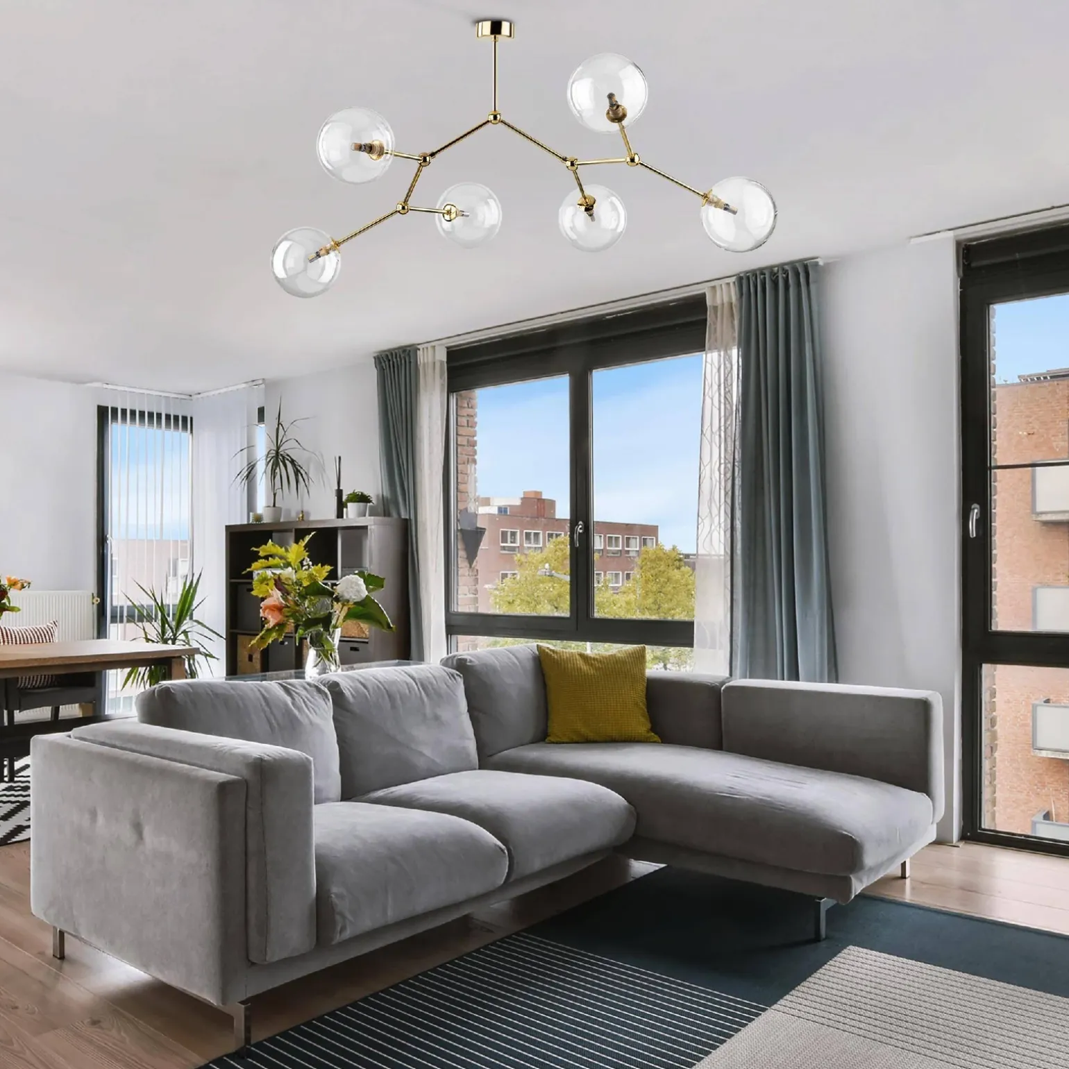 Przy projektowaniu lamp sufitowych z abażurem, producent zwrócił uwagę na każdy detal. Lampa FAIRY GOLD wyróżnia się metalowym stelażem, który zapewnia nie tylko stabilność, ale także doskonałe dopełnienie przezroczystych kloszy. W efekcie powstaje harmonijna całość, która doskonale wpisuje się w trendy lamp sufitowych metalowych.