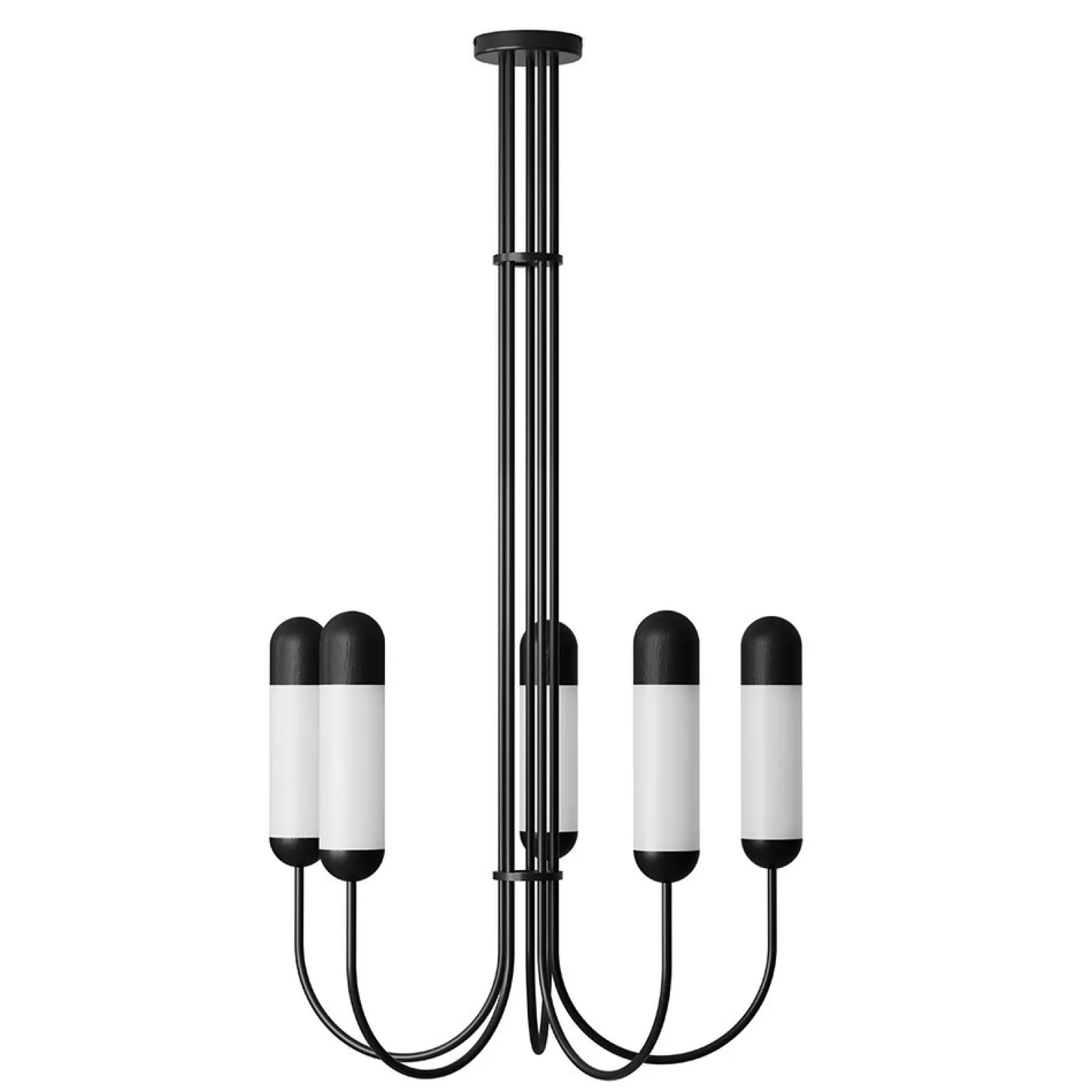 Żyrandol FUNSUI B wyróżnia się swoją unikalną budową oraz pięknym połączeniem kolorów. Czarna baza żyrandola oraz biały klosz tworzą harmonijną kompozycję, która przyciąga wzrok. Z pięcioma punktami świetlnymi, które można z łatwością dopasować do indywidualnych potrzeb, ten model oferuje różnorodne możliwości oświetleniowe, nadając wyjątkowy charakter każdemu pomieszczeniu. Warto również zaznaczyć, że żyrandol nie zawiera źródeł światła w komplecie, umożliwiając wybór odpowiednich żarówek według własnych preferencji.