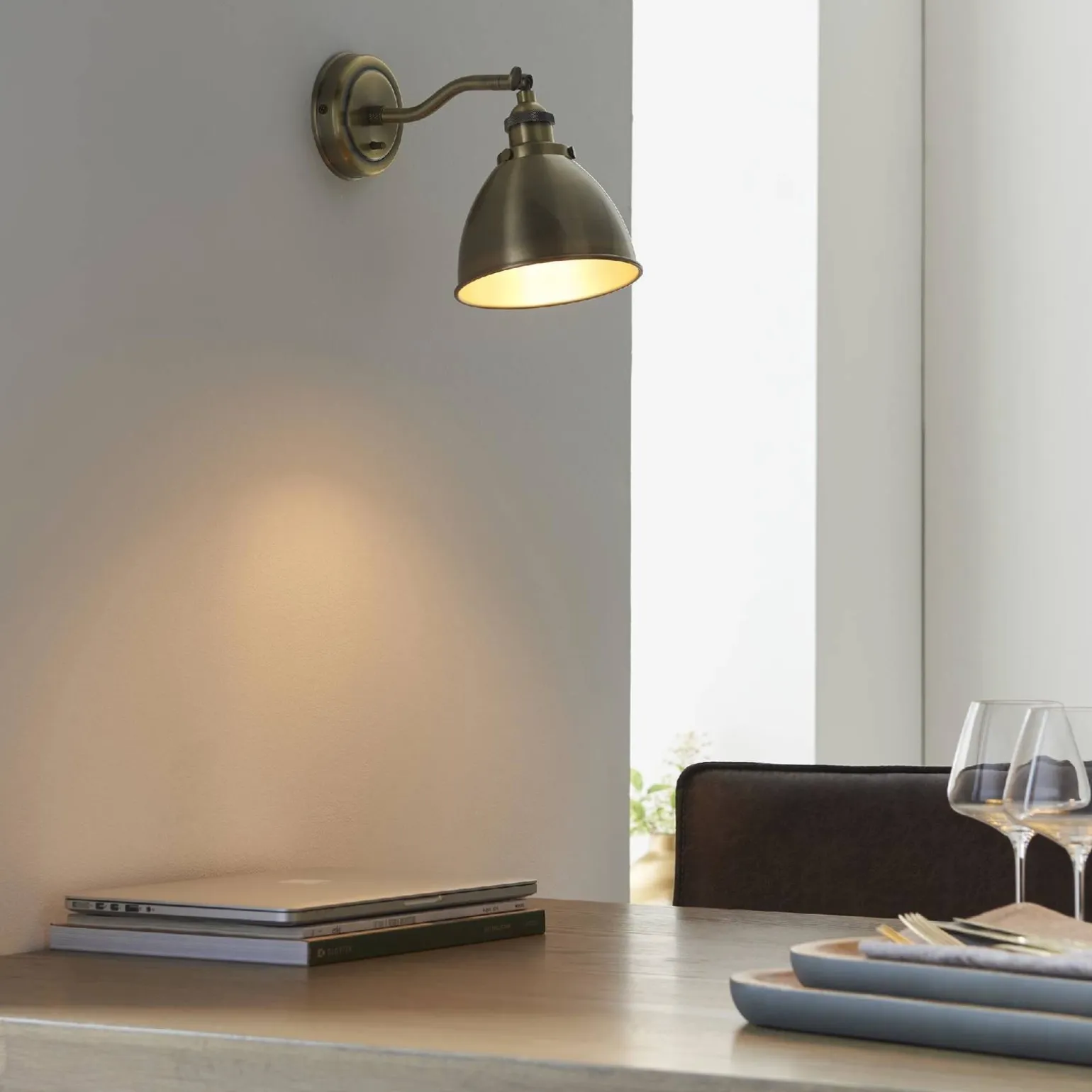 Kinkiet charakteryzuje się stopniem ochrony IP20, co oznacza, że jest przeznaczony do użytku wewnętrznego. Jest to istotna cecha, zapewniająca bezpieczeństwo i odpowiednią funkcjonalność w różnych pomieszczeniach, takich jak sypialnie, salony czy korytarze. Zasilany napięciem 220-240V, kinkiet Franklin spełnia wszystkie normy europejskie, co gwarantuje jego niezawodność i trwałość. Jego prosty montaż sprawia, że każdy może samodzielnie zainstalować go w swoim domu, a doskonałe wykończenie mosiężnego talerza dodaje elegancji i klasy.