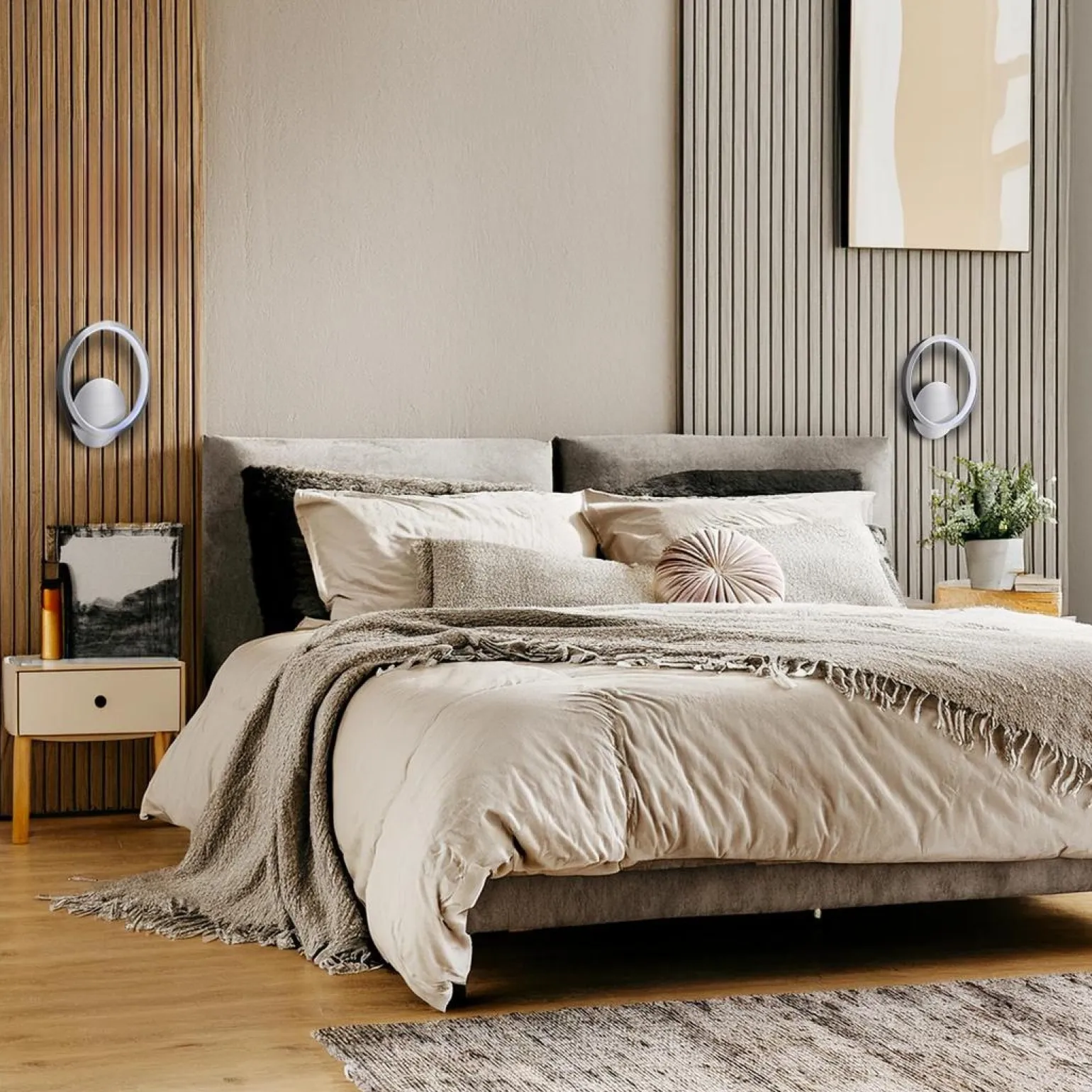 Podczas wyboru oświetlenia do sypialni warto zwrócić uwagę na kinkiety sypialniane, które pełnią nie tylko funkcję praktyczną, ale także estetyczną. Kinkiet HOOP CHROME to propozycja dla tych, którzy cenią sobie styl i nowoczesne rozwiązania. Jego delikatne formy i świetlne pierścienie tworzą wyjątkową grę światła, która zmienia charakter każdego wnętrza, wprowadzając do niego przytulność oraz elegancję.