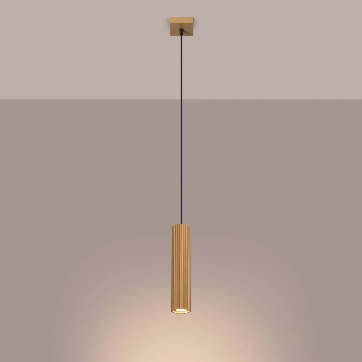 Lampa wisząca KARBON 1 złoty (SL.1554) od marki Sollux Lighting to doskonały wybór dla osób poszukujących elementu oświetleniowego, który nie tylko spełnia swoje funkcje, ale także stanowi elegancką dekorację wnętrza. Wykonana z wysokiej jakości aluminium, ta nowoczesna lampa wisząca z ryflowaną powierzchnią przyciąga wzrok swoimi stylowymi detalami. Jej złoty kolor dodaje elegancji i sprawia, że idealnie wpisuje się w aktualne trendy aranżacyjne.