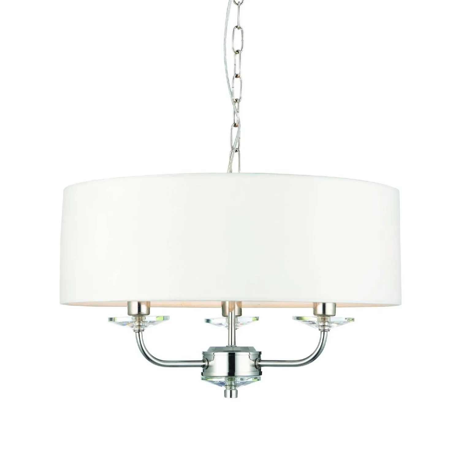Jednym z najważniejszych atutów lampy Nixon jest jej stylowy wygląd. Klosz w kolorze białym, zaprojektowany z dbałością o detale, doskonale rozprasza światło, tworząc przytulny i ciepły nastrój w pomieszczeniu. Jej eleganckie wykończenie w postaci jasnego niklowanego talerza dodaje całości nowoczesnego charakteru, a kryształowe detale podkreślają luksusowy styl. Lampa wspaniale komponuje się z różnymi stylami aranżacyjnymi, takimi jak glamour, hampton czy klasyczny.