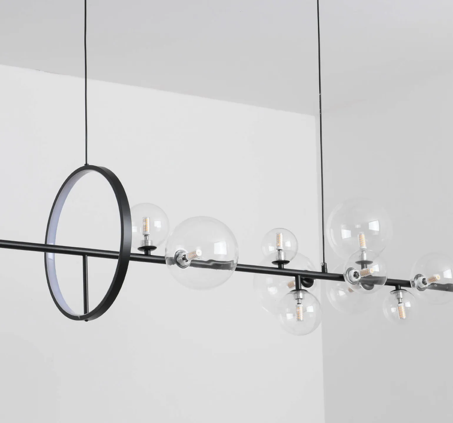 Przyciągając uwagę swoimi wyjątkowymi kulami, lampa wisząca Orion to produkt dedykowany do wykorzystania w różnych miejscach. Można ją zamontować nad stołem, w jadalni czy nad wyspą kuchenną, tworząc przytulną atmosferę podczas wspólnych posiłków. Dzięki świecącym kulkowatom źródłom światła o maksymalnej mocy 50 W, lampa emituje strumień światła o natężeniu 400 lm, co wystarczająco oświetli każdy zakątek pomieszczenia.