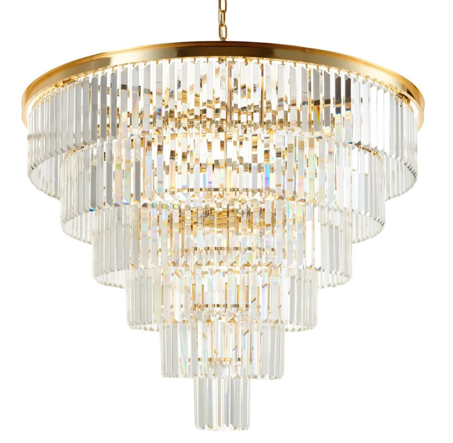 Lampa wisząca SPLENDORE złota 100 cm od marki Step into Design to znakomity przykład elegancji i wyrafinowanego stylu, idealny dla wszystkich, którzy pragną dodać odrobinę luksusu do swojego wnętrza. Jej złoty kolor oraz przezroczyste elementy wykonane z stali, szkła i kryształu sprawiają, że lampa ta nie tylko oświetli przestrzeń, ale stanie się także centralnym punktem każdej aranżacji. Wykonana w stylu Glamour, Klasycznym i Art Deco, doskonale wpisuje się w najnowsze trendy wnętrzarskie, przyciągając wzrok i dodając niepowtarzalnego charakteru.