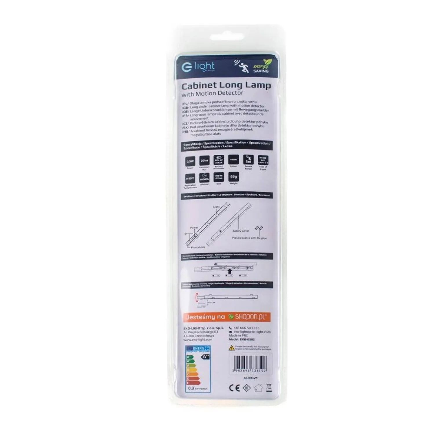 Lampka podszafkowa Eko-Light EKB6592 to doskonałe połączenie nowoczesnych technologii z praktycznym zastosowaniem. Dzięki czujce ruchu, neutralnej barwie światła i energooszczędnej mocy, z pewnością stanie się niezastąpionym elementem w Twojej kuchni, garderobie i nie tylko. Jej wszechstronność oraz prostota instalacji sprawiają, że jest to produkt, który warto mieć w każdym nowoczesnym wnętrzu. Przekonaj się sam, jak lampka Eko-Light może poprawić komfort Twojego codziennego życia!