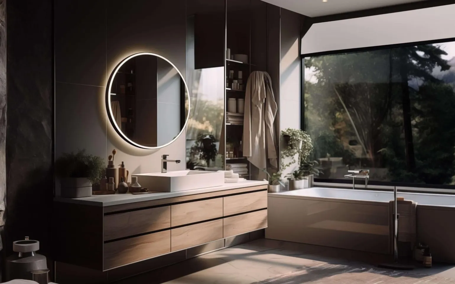 Nowoczesne oświetlenie LED wbudowane w lustro zapewnia odpowiednie doświetlenie twarzy, co czyni go idealnym rozwiązaniem dla osób, które przykładają dużą wagę do detali podczas makijażu czy golenia. Barwa światła neutralna harmonizuje z naturalnym światłem, co pozwala na uzyskanie realistycznego efektu. Zintegrowany trzonek LED gwarantuje długowieczność oraz oszczędność energii, co obniża koszty użytkowania.