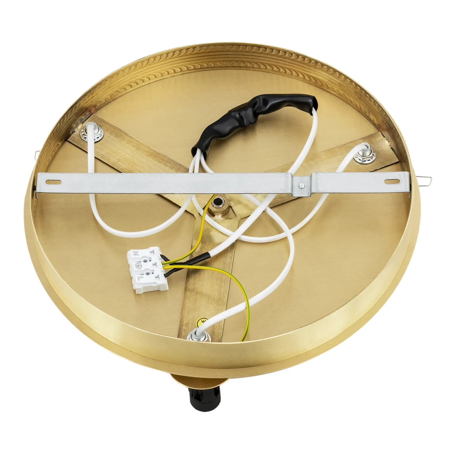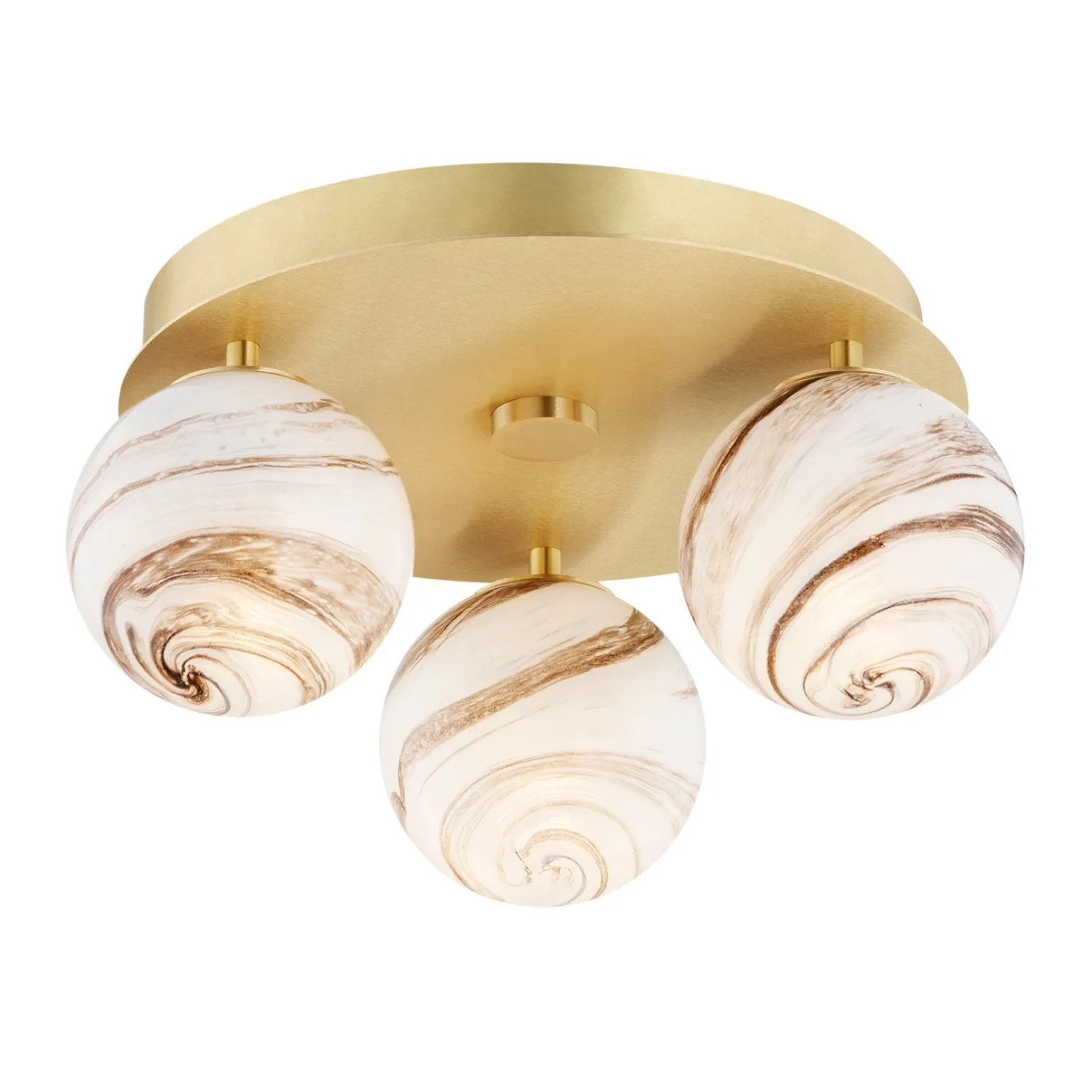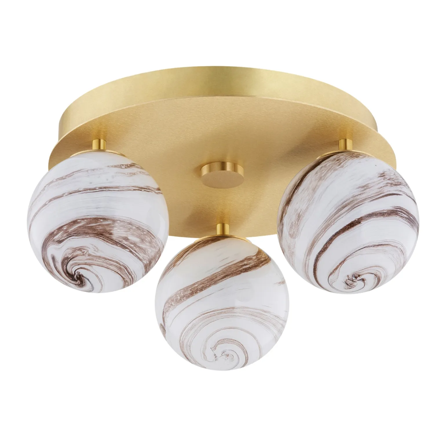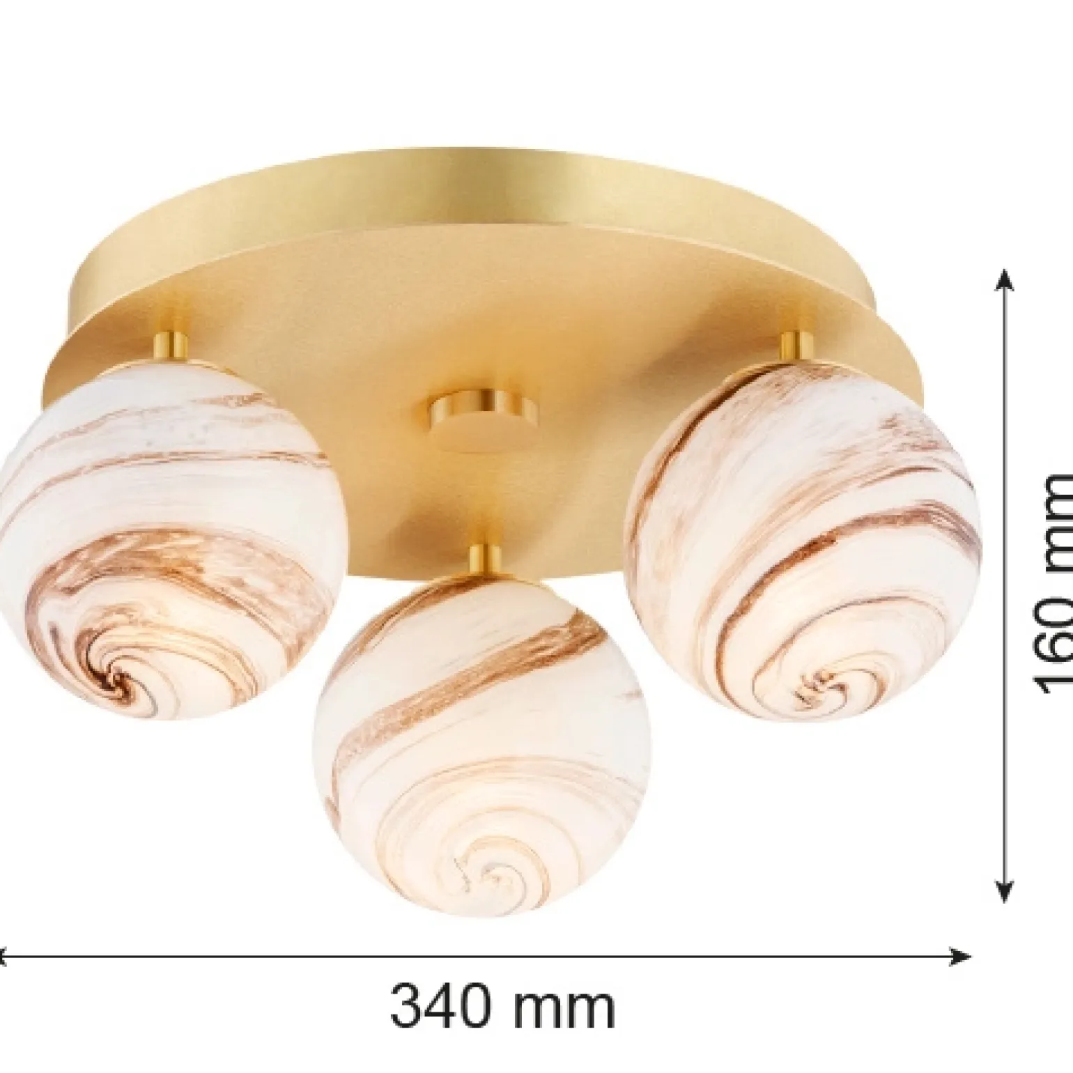 Ten plafon sufitowy wyróżnia się ciekawym wzornictwem, które doskonale wpisuje się w styl Glamour oraz Hampton. Wykonany z połączenia szkła i mosiądzu, przyciąga uwagę swoim marmurowym kloszem. Taka kombinacja materiałów nie tylko nadaje mu elegancji, ale również sprawia, że jest trwały i odporny na zniszczenia.