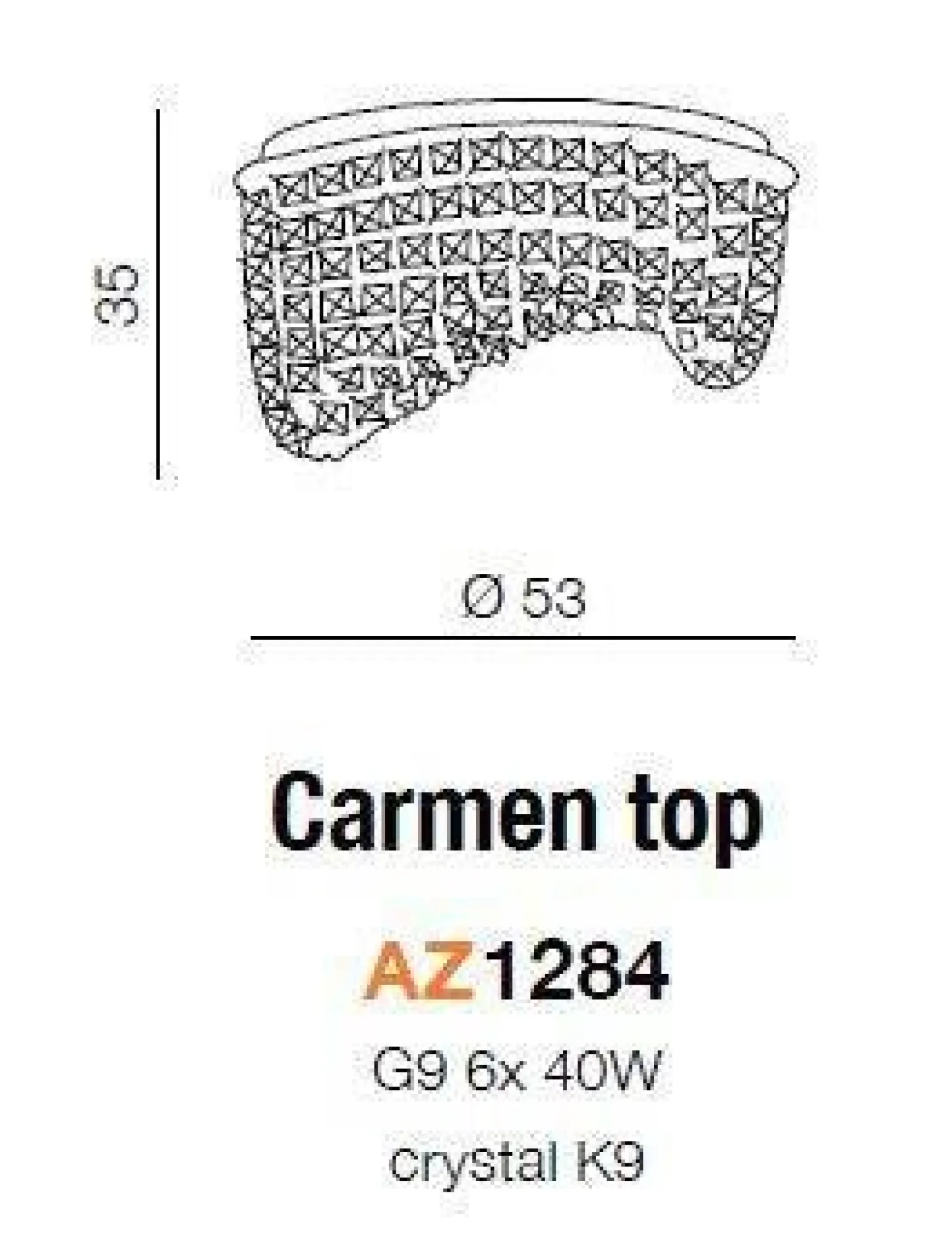 Plafon CARMEN AZ1284 charakteryzuje się przezroczystym wykończeniem, które w połączeniu z sześcioma źródłami światła typu G9 (każde o maksymalnej mocy 40W) tworzy niezwykle efektowne oświetlenie. Dzięki takiej konstrukcji, lampy sufitowe do salonu lub lampy sufitowe do jadalni dostarczają odpowiednią ilość światła, jednocześnie nadając pomieszczeniu niepowtarzalny charakter.