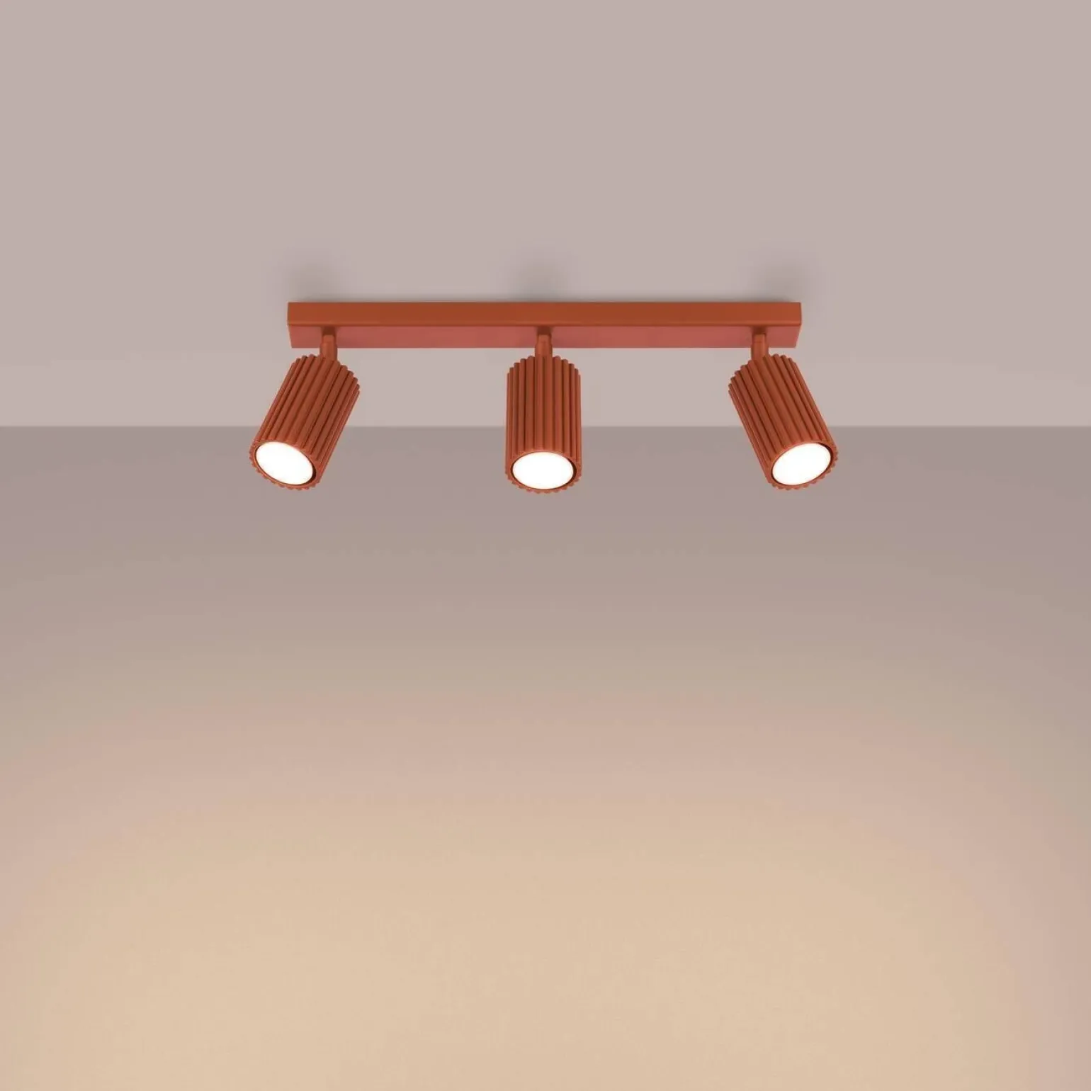 Lampa plafonowa KARBON 3L w kolorze ochra czerwona od marki Sollux Lighting to doskonały wybór dla osób poszukujących **nowoczesnych plafonów** do swojego wnętrza. Kod produktu SL.1638 wskazuje na wyjątkową jakość i wysokie standardy wykonania tego modelu. Dzięki trzem punktom świetlnym na trzonkach GU10, lampa ta jest w stanie dostarczyć odpowiednią ilość światła, co czyni ją idealnym rozwiązaniem do różnych pomieszczeń, takich jak salon, sypialnia, kuchnia czy przedpokój.
