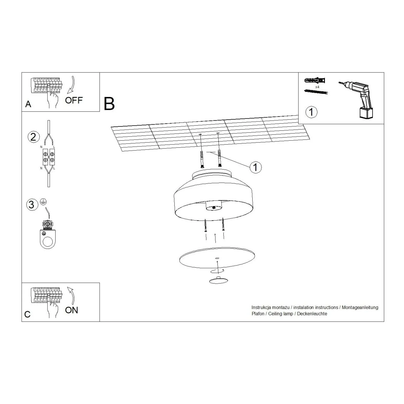 Nasza lampa to plafon wewnętrzny o klasycznym, okrągłym kształcie, który został wykonany z wysokiej jakości materiałów: stali oraz tworzywa sztucznego. Oferuje możliwość umieszczenia czterech źródeł światła typu E27, co zapewnia maksymalną moc do 15 W. Dzięki temu plafon OMIQ doskonale rozprasza światło w pomieszczeniu, tworząc przyjemną atmosferę, idealną do relaksu oraz spotkań z bliskimi. Obecność plafonów nowoczesnych w Twoim wnętrzu sprawi, że będzie ono nie tylko funkcjonalne, ale również estetyczne.