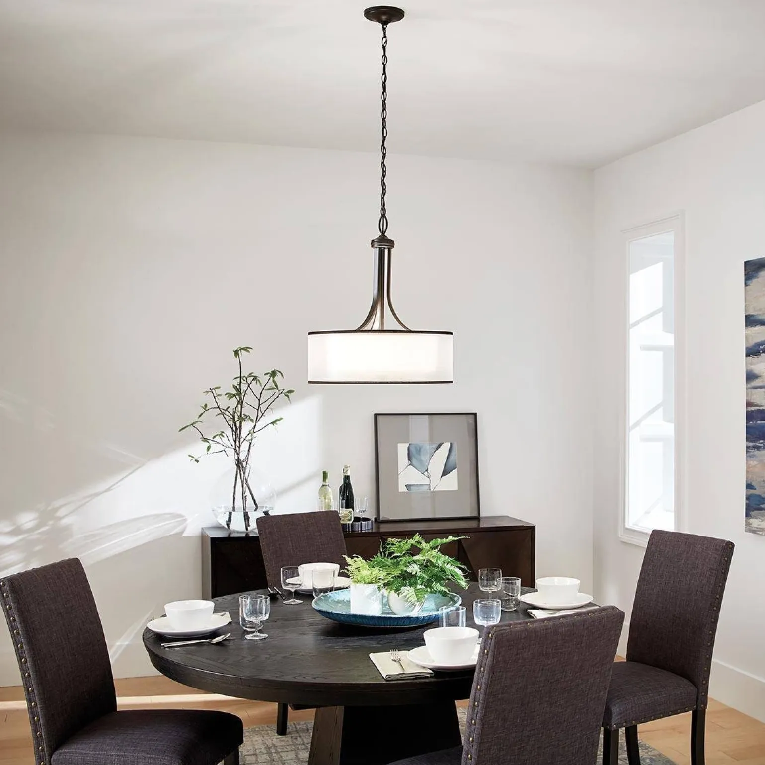 Jednym z głównych atutów lamp wiszących jest ich uniwersalność. Model Lacey doskonale sprawdzi się zarówno nad stołem w jadalni, jak i nad wyspą kuchenną. Jego stylowy design przyciąga wzrok, tworząc przyjemny punkt centralny w pomieszczeniu. Idealnie komponuje się z różnorodnymi aranżacjami, podkreślając ich charakter. Dzięki możliwości regulacji wysokości podczas montażu, dostosujesz lampę do swoich indywidualnych potrzeb i wymagań.