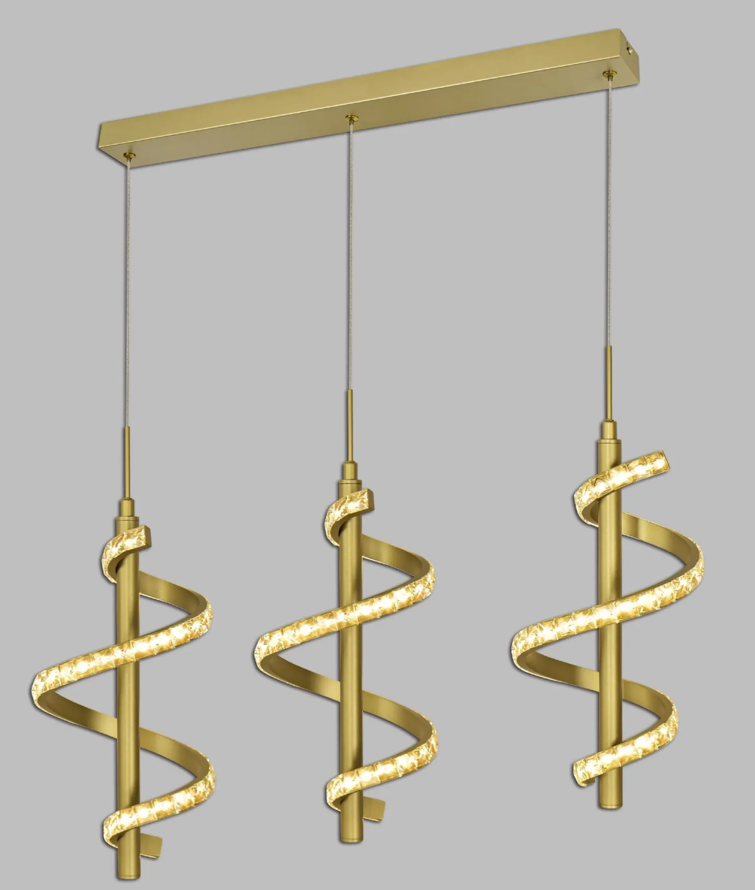 Aviano Lighting z dumą przedstawia spiralną lampę wiszącą potrójną CLARET (kod produktu: 7209-0315), która doskonale łączy elegancję z funkcjonalnością. Ten wyjątkowy model został zaprojektowany z myślą o wnętrzach, w których styl glamour spotyka się z nowoczesnością. Dzięki dekoracyjnym kryształom, lampa dodaje blasku i wyrafinowania każdemu pomieszczeniu, stając się centralnym punktem aranżacji. Idealnie sprawdzi się w jadalni oraz kuchni, gdzie może być zawieszona nad stołem lub wyspą, tworząc przytulną atmosferę do wspólnych posiłków.