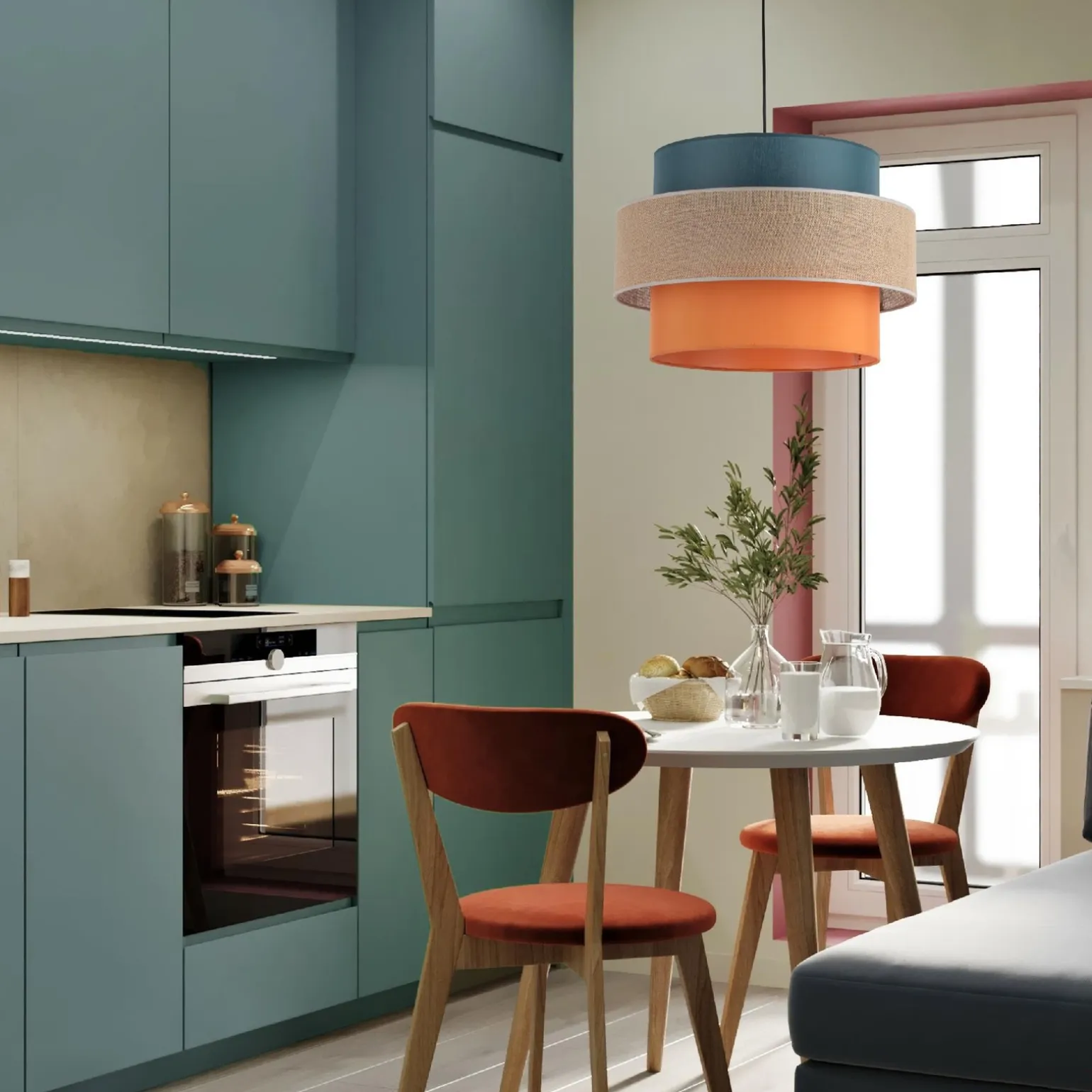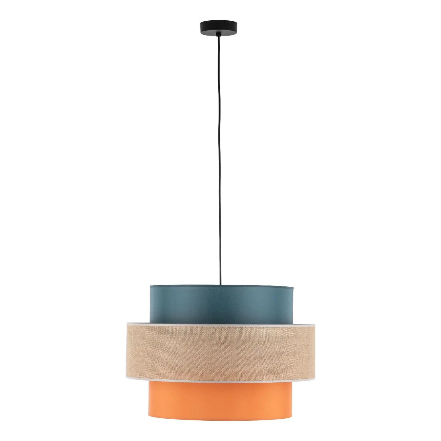 Wielokolorowa lampa wisząca TRIO JUTA 1 (2758)</b) od TK Lighting to wyjątkowy element oświetlenia, który wprowadza do wnętrza niepowtarzalny styl. Jej wielokolorowy klosz w odcieniach zieleni, beżu i pomarańczy sprawia, że jest idealna do nowoczesnych i przytulnych aranżacji. Dzięki zastosowaniu materiałów takich jak tworzywo sztuczne, tkanina i juta, lampa łączy w sobie estetykę oraz funkcjonalność, co czyni ją doskonałym wyborem dla osób poszukujących unikalnych rozwiązań oświetleniowych.