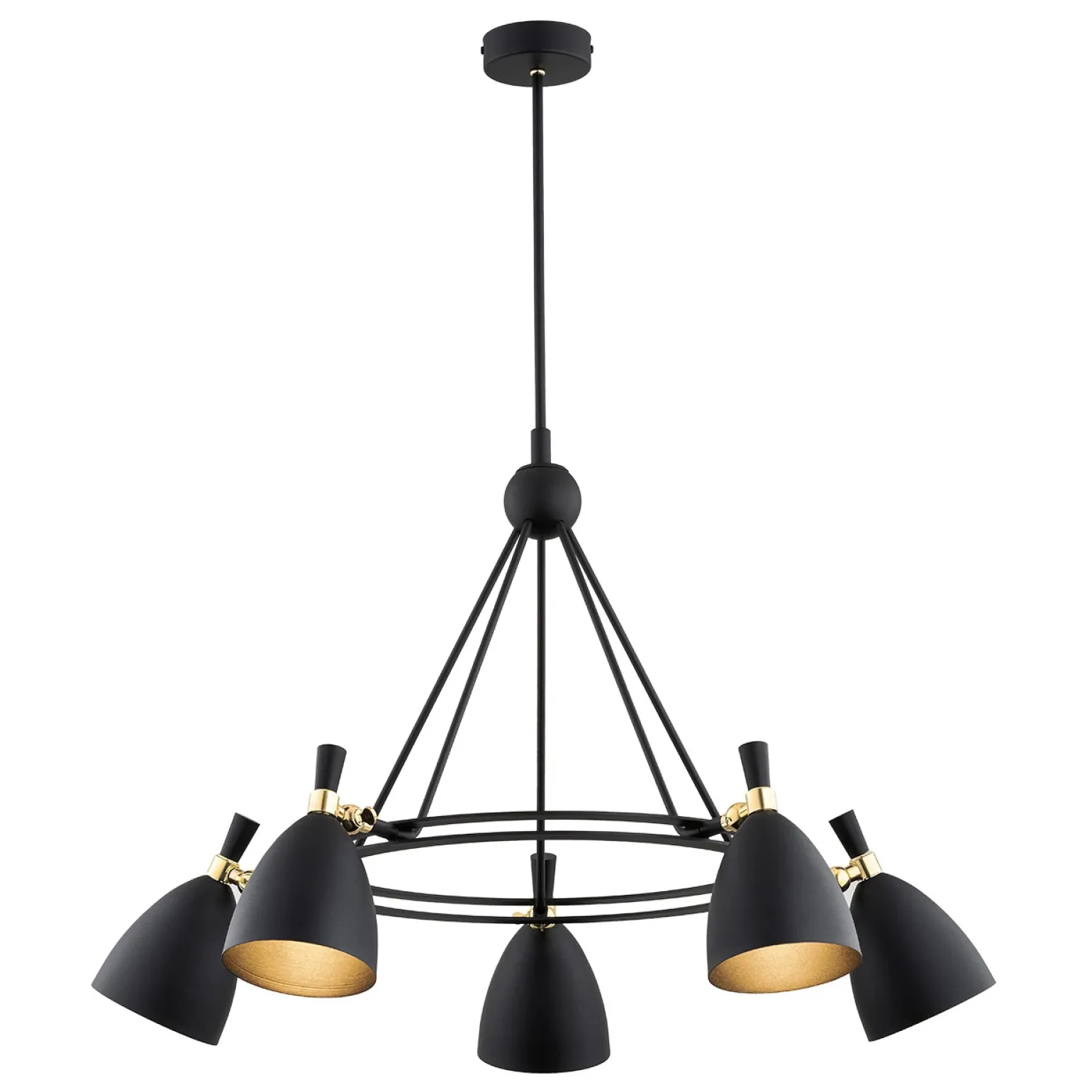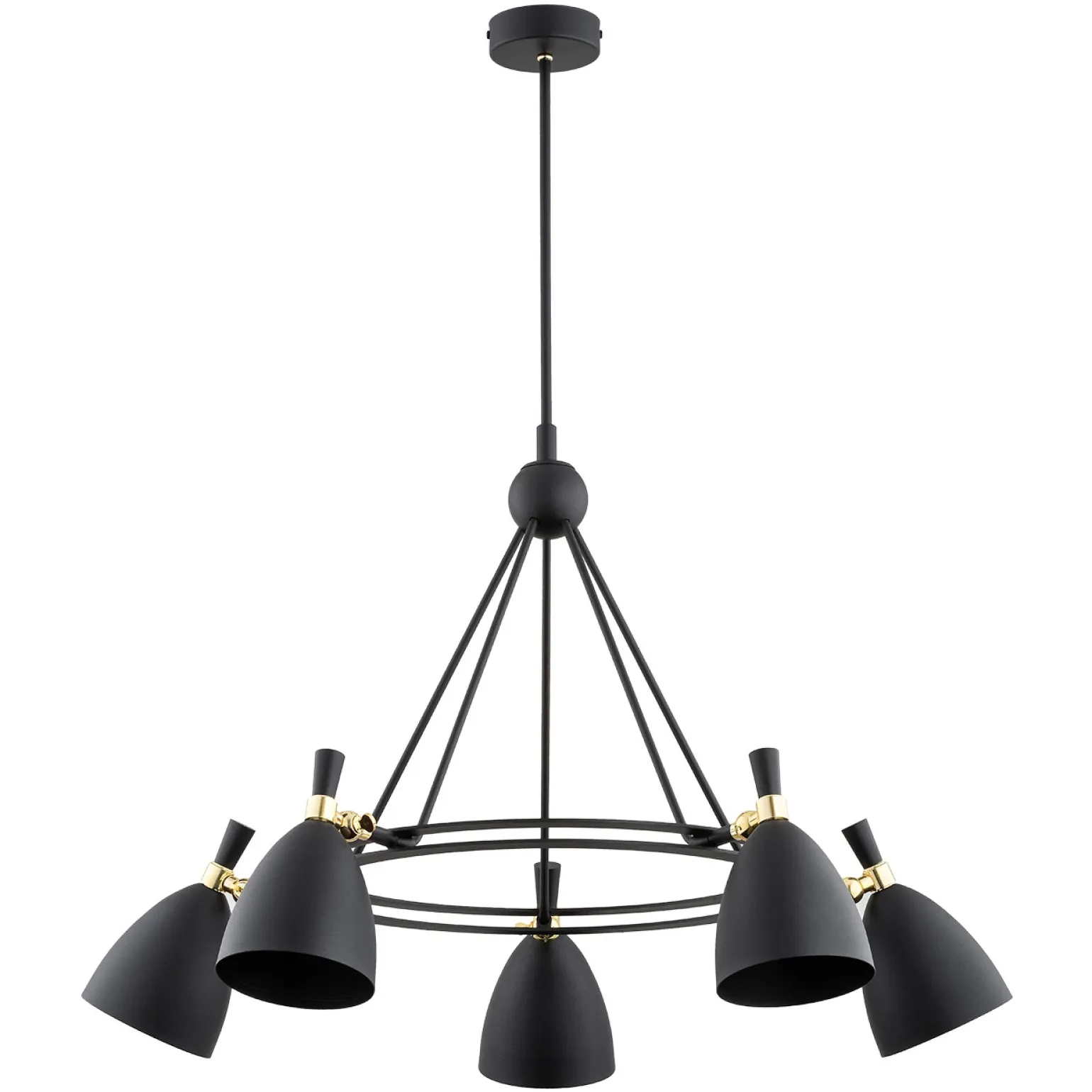Wykonany z wysokiej jakości stali, żyrandol 5 pł. CHARLOTTE dostępny jest w kolorze czarnym, co sprawia, że idealnie wpisuje się w aktualne trendy i z łatwością komponuje się z różnorodnymi stylami aranżacyjnymi. To doskonały wybór zarówno dla miłośników stylu retro, jak i skandynawskiego. Dodatkowo, pasuje do nowoczesnych przestrzeni, dodając im niepowtarzalnego charakteru. Żyrandole czarne są nie tylko eleganckie, ale także praktyczne, doskonale maskując ewentualne zanieczyszczenia czy osady.