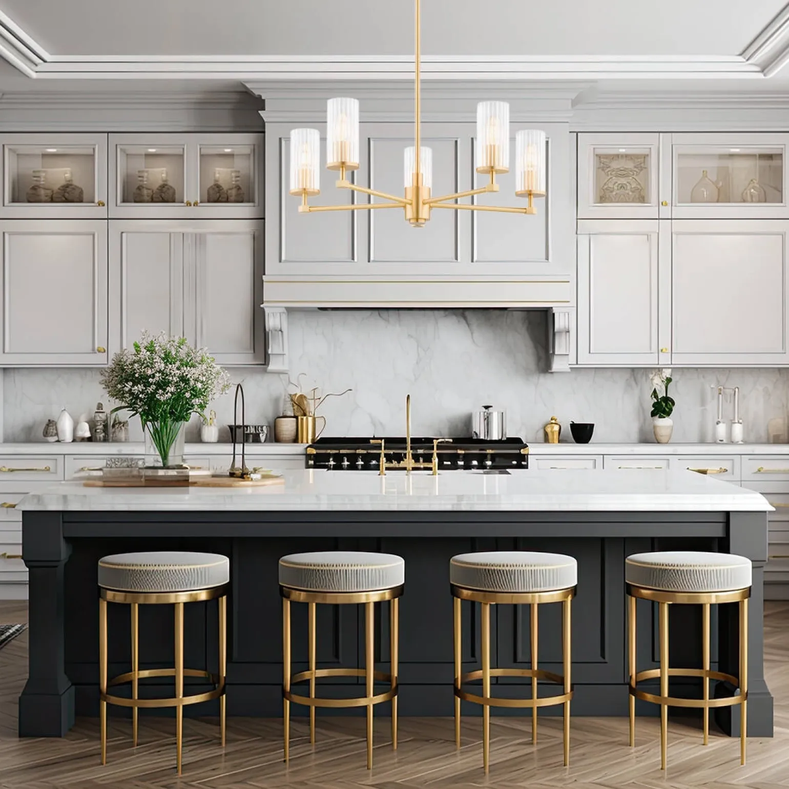 Wykonanie z wysokiej jakości szkła i mosiądzu sprawia, że żyrandol mosiężny HAMPTON jest nie tylko estetyczny, ale również trwały. Przezroczysty klosz w połączeniu z mosiężnymi detalami tworzy wysublimowany efekt wizualny, który nadaje się zarówno do nowoczesnych, jak i klasycznych aranżacji. Dodatkowo, możliwość wydłużenia lub skrócenia sztycy żyrandola sprawia, że łatwo dostosować go do wysokości pomieszczenia, co czyni go niezwykle elastycznym rozwiązaniem w każdej kuchni.