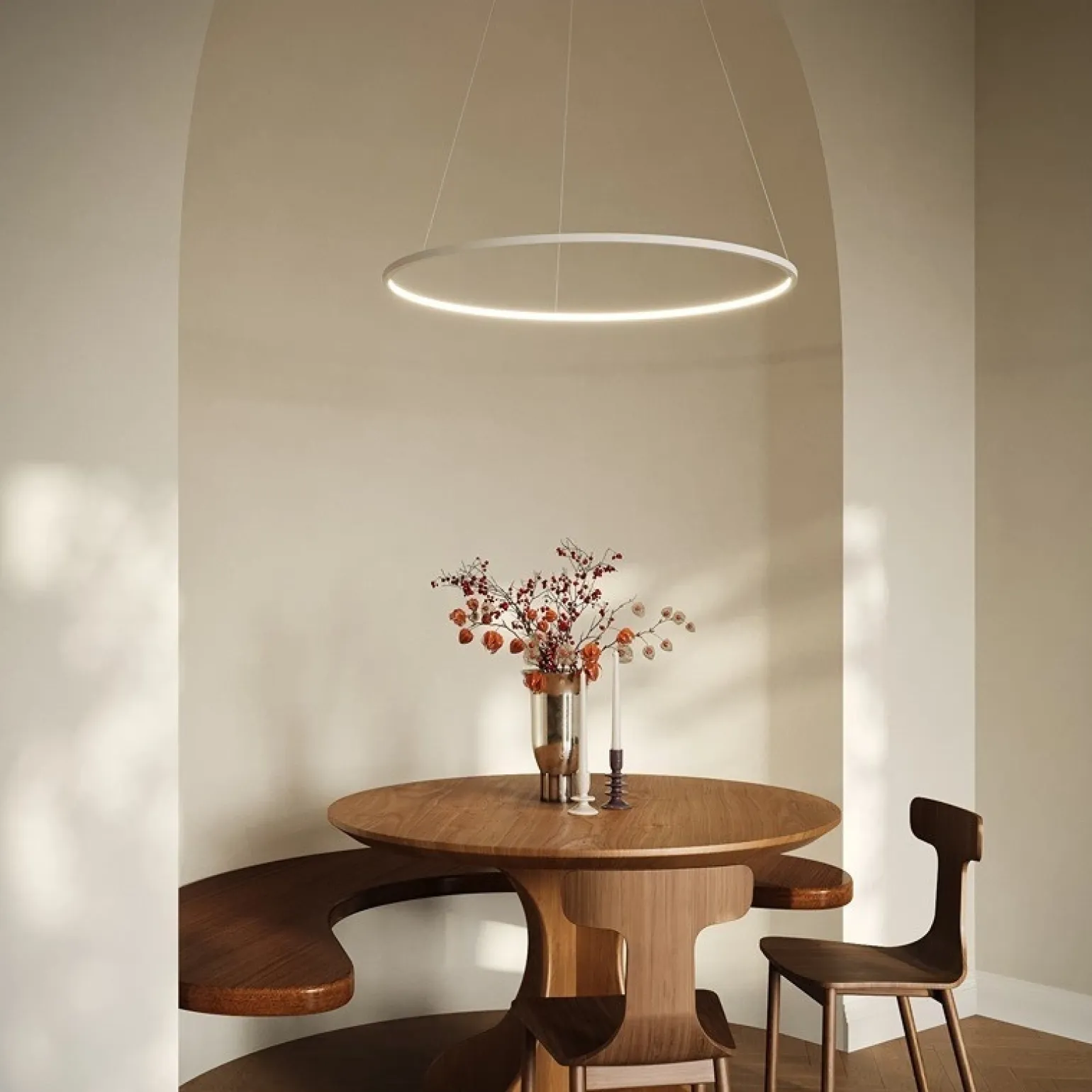 Produkt jest wyposażony w zintegrowany trzonek LED, który zapewnia maksymalną moc 48 W oraz strumień światła wynoszący 2120 lm. Dzięki neutralnej temperaturze barwy 4000 K, żyrandol emituje przyjemne, równomierne światło, które doskonale oświetli każdy zakątek. Niezależnie od pory dnia, jego obecność stworzy w pomieszczeniu odpowiednią atmosferę, sprzyjającą zarówno pracy, jak i relaksowi.