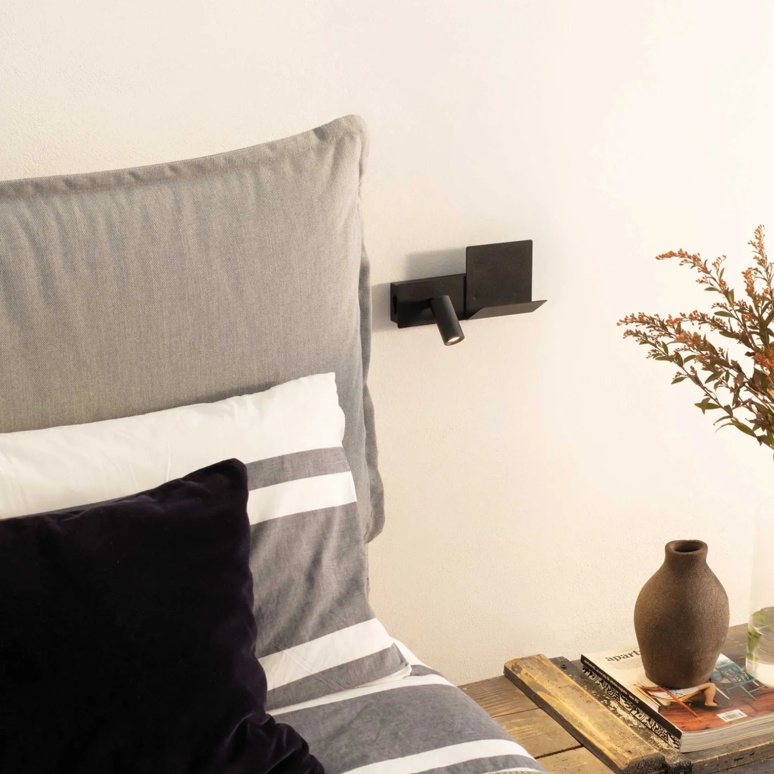 Nowoczesna forma kinkietu łączy w sobie estetykę z użytecznością. Wyposażony w półkę, stanowi idealne miejsce na postawienie ulubionej książki czy telefonu. Dzięki temu, KOMODO staje się nie tylko elementem oświetleniowym, ale również praktycznym meblem, który ułatwia organizację przestrzeni wokół łóżka czy biurka.