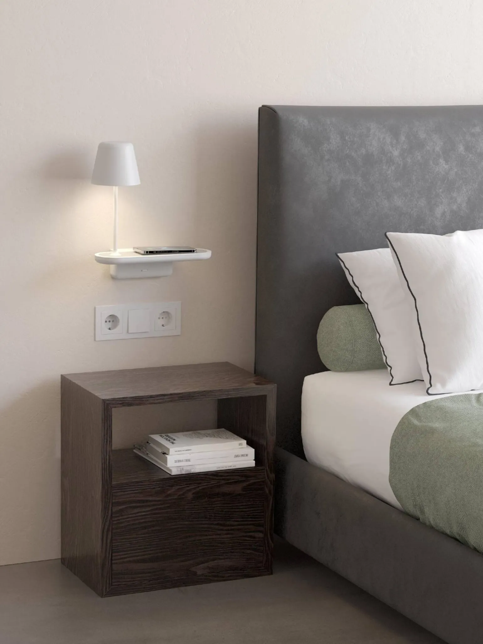 Kinkiety sypialniane Ito oferują również praktyczne rozwiązania. Wbudowana półka stanowi doskonałe miejsce na dekoracje lub niezbędne przedmioty, które chcesz mieć zawsze pod ręką. Kinkiet można zamontować w dowolnym miejscu w sypialni, co czyni go idealnym rozwiązaniem do strefy relaksu lub obok łóżka. Wprowadza to nową jakość do aranżacji wnętrza, łącząc funkcjonalność z estetyką.