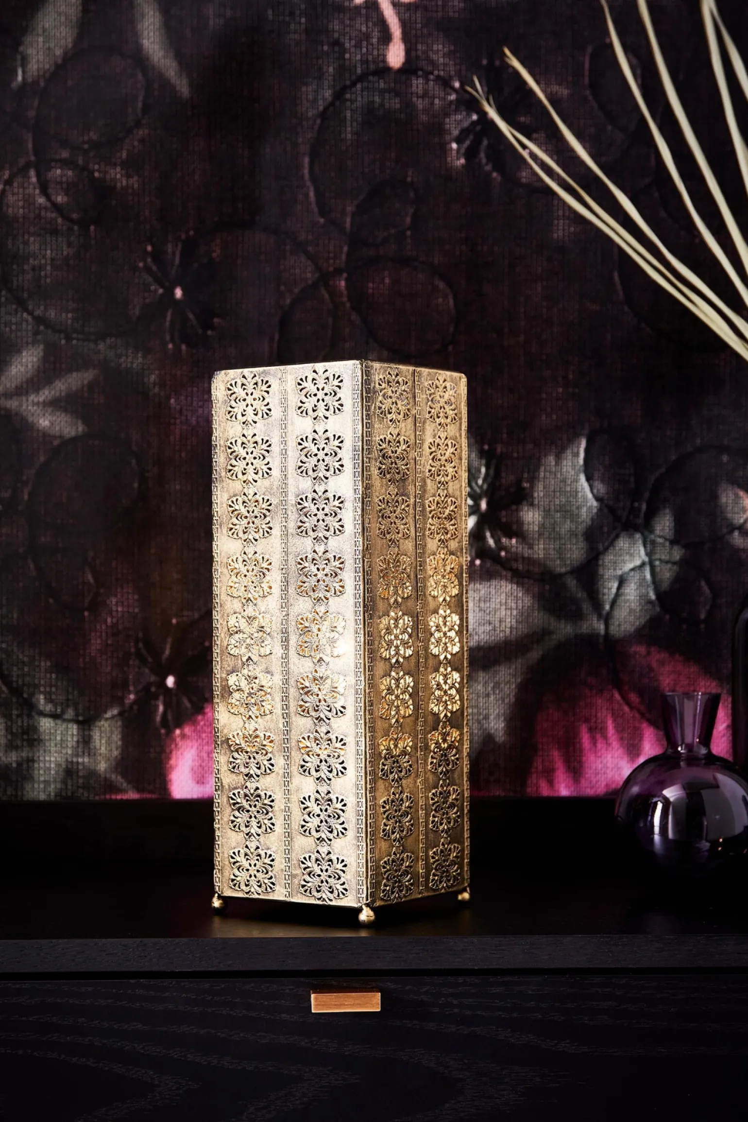 Kolor Antyczny i Czarny nadaje lampie AGRA wyrafinowanego wyglądu, który wprowadza ciepło i przytulność do pomieszczeń. Lampa doskonale sprawdza się jako ozdobny element na komodzie, stając się nie tylko źródłem światła, ale i atrakcyjną dekoracją, która zwraca uwagę każdego gościa. Jej unikatowy styl Boho i Rustykalny wprawi w zachwyt miłośników naturalnych materiałów i elementów retro.