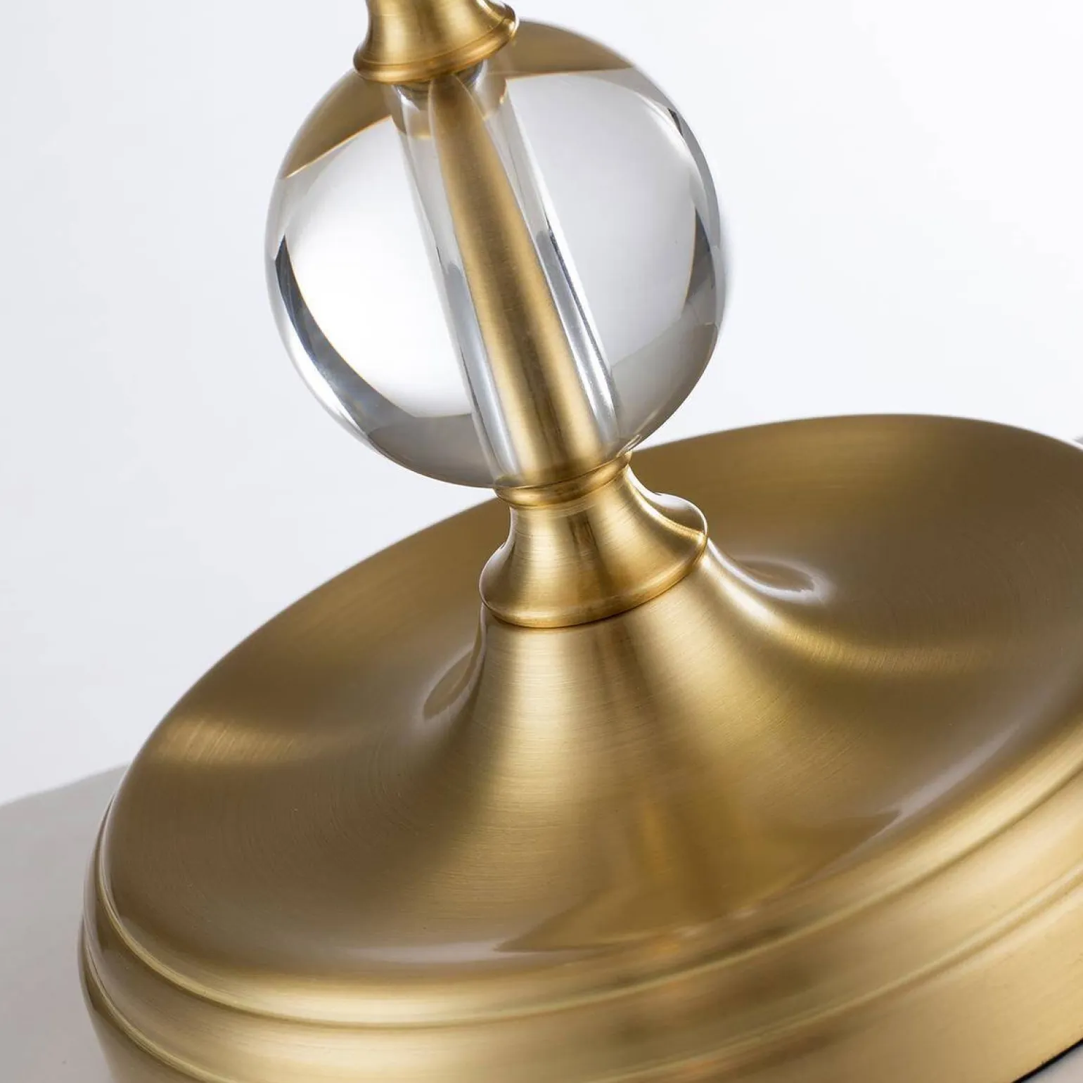 Lampa została wykonana z wysokogatunkowych materiałów, takich jak stal, szkło oraz tkanina. Użycie mosiądzu podkreśla jej ekskluzywny charakter, a szklane elementy zapewniają elegancki i nowoczesny wygląd. Dodatkowo, tkaninowy abażur pozwala na stworzenie przyjemnej, rozproszonej atmosfery w pomieszczeniu, co czyni ją idealną opcją do sypialni, salonu czy jadalni.