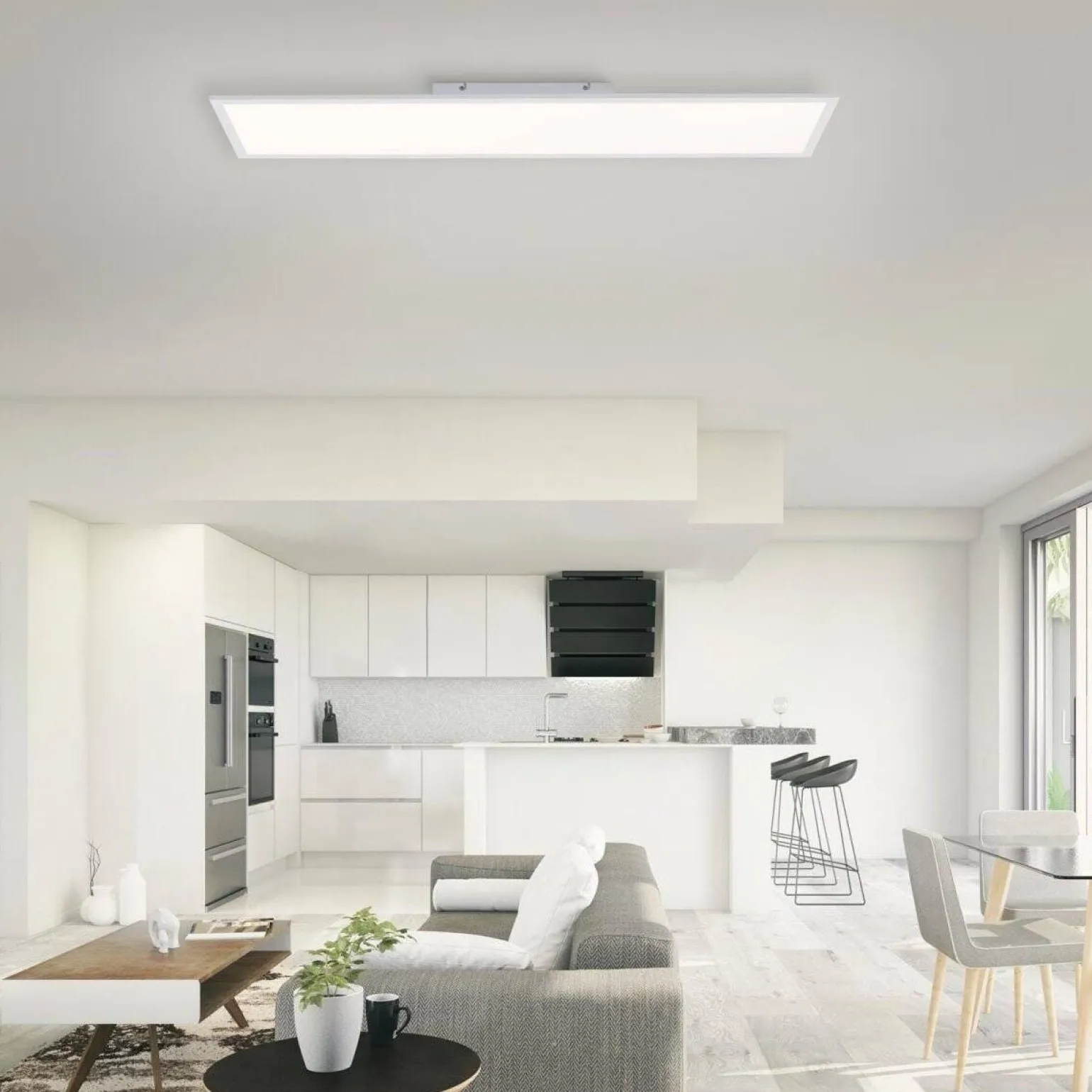 Jej wymiary sprawiają, że jest to duży plafon, który świetnie nadaje się zarówno jako oświetlenie nad stół, jak i nad wyspę kuchenną. To plafon sufitowy wyróżniający się prostokątnym kształtem, który doskonale wpisuje się w obecne trendy w aranżacji wnętrz. Dodatkowo lampa sufitowa FLAT należy do kategorii plafonów wewnętrznych, co czyni ją uniwersalnym rozwiązaniem dla różnych pomieszczeń.