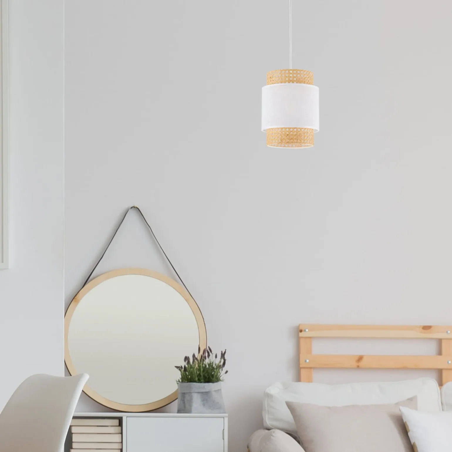Kiedy myślimy o aranżacji sypialni, kluczową rolę odgrywa wybór odpowiedniego oświetlenia. Lampa wisząca BOHO to doskonały wybór dla osób, które cenią sobie estetykę oraz funkcjonalność. Jej subtelny design w białym kolorze z naturalnymi akcentami sprawia, że dobrze współgra zarówno z minimalistycznymi, jak i boho czy skandynawskimi aranżacjami. Lampy wiszące do sypialni tego typu dodają wnętrzu przytulności i stylu, a ich obecność wpływa na całościowy charakter pomieszczenia.