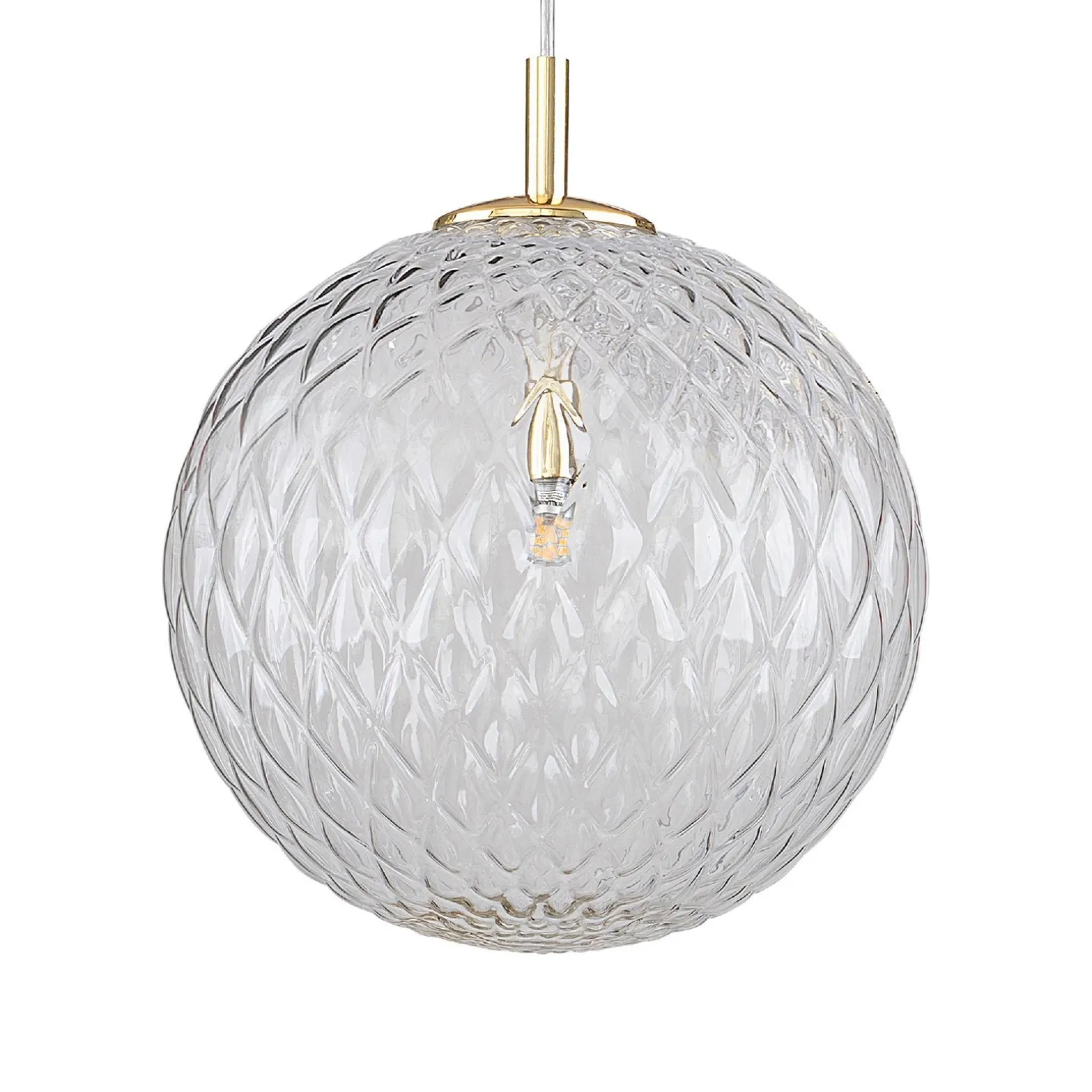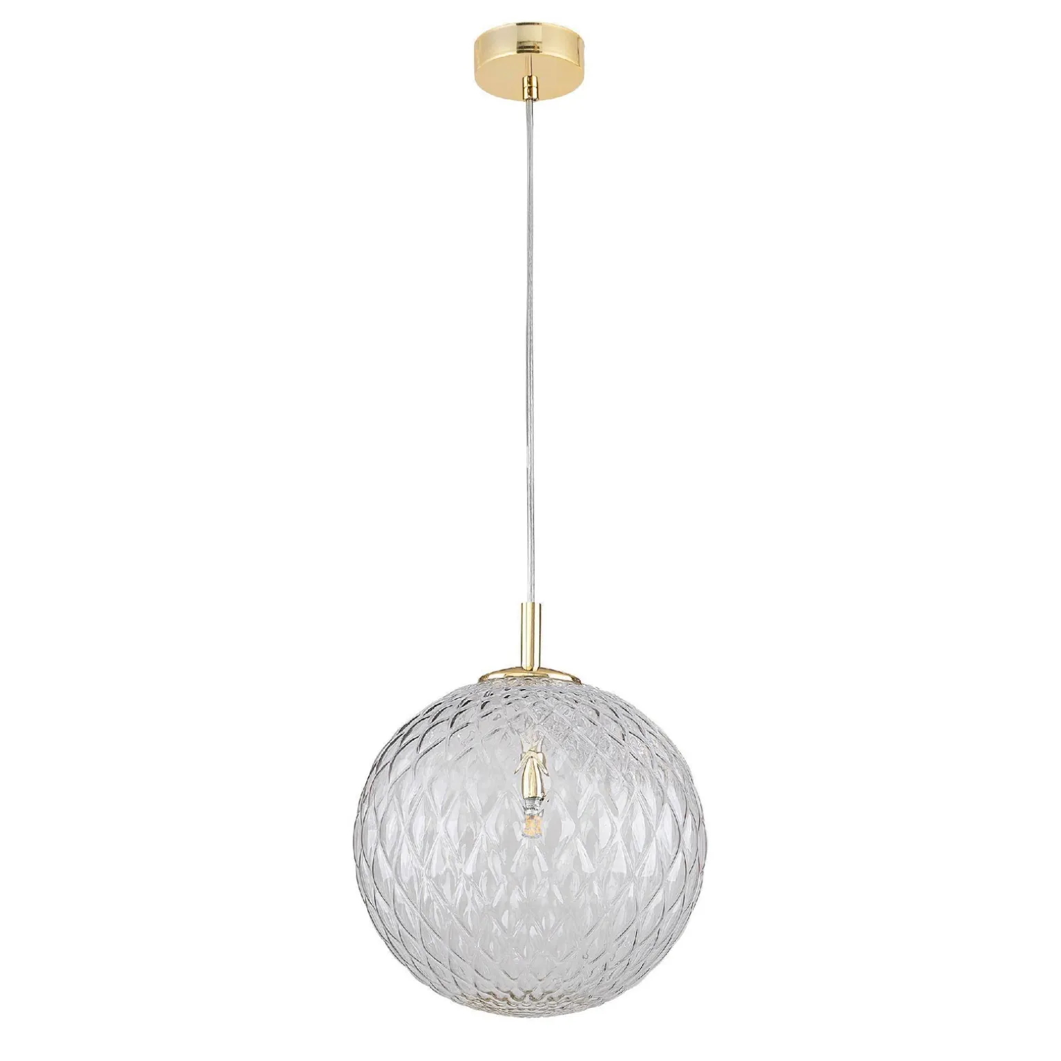 Lampa wisząca CADIX złota Ø30 (4610) – TK Lighting to doskonały wybór dla osób poszukujących efektownego oświetlenia, które doda charakteru każdemu wnętrzu. Ta desingerska lampa wisząca łączy w sobie elegancję z nowoczesnymi trendami aranżacyjnymi, sprawiając, że stanie się ona centralnym punktem każdego pomieszczenia. Jej złoty kolor oraz transparentny klosz doskonale wpisują się w styl glamour, nowoczesny oraz art deco, co czyni ją idealnym rozwiązaniem do salonu, sypialni czy jadalni.