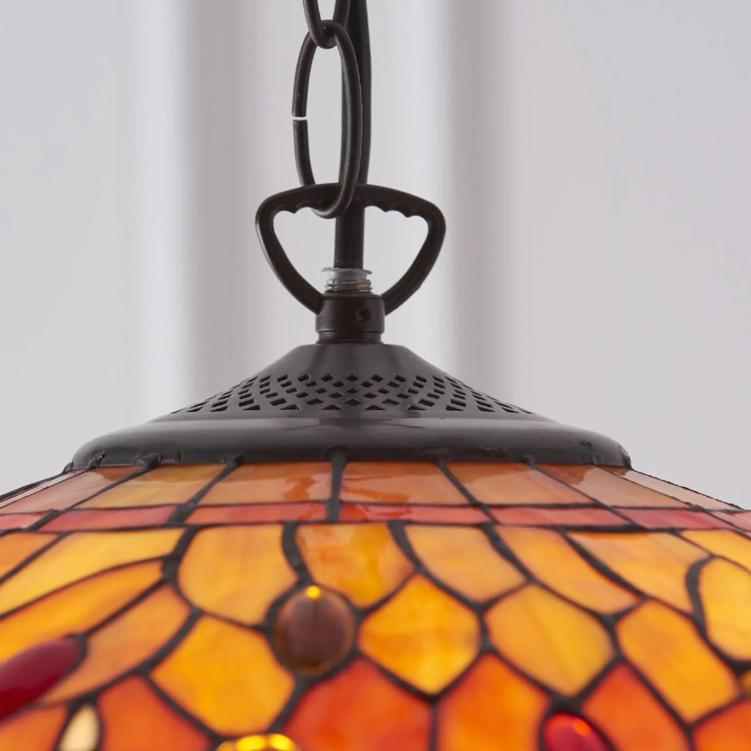 Lampa ta posiada stopień ochrony IP20, co czyni ją idealną do użytku wewnętrznego. Jej opcja ściemniania pozwala na dostosowanie intensywności światła do aktualnych potrzeb, co jest niezwykle przydatne podczas organizowania wieczornych spotkań czy romantycznych kolacji. Tiffany zadbał o każdy detal, aby użytkownicy mogli cieszyć się nie tylko pięknym designem, ale także komfortem użytkowania.
