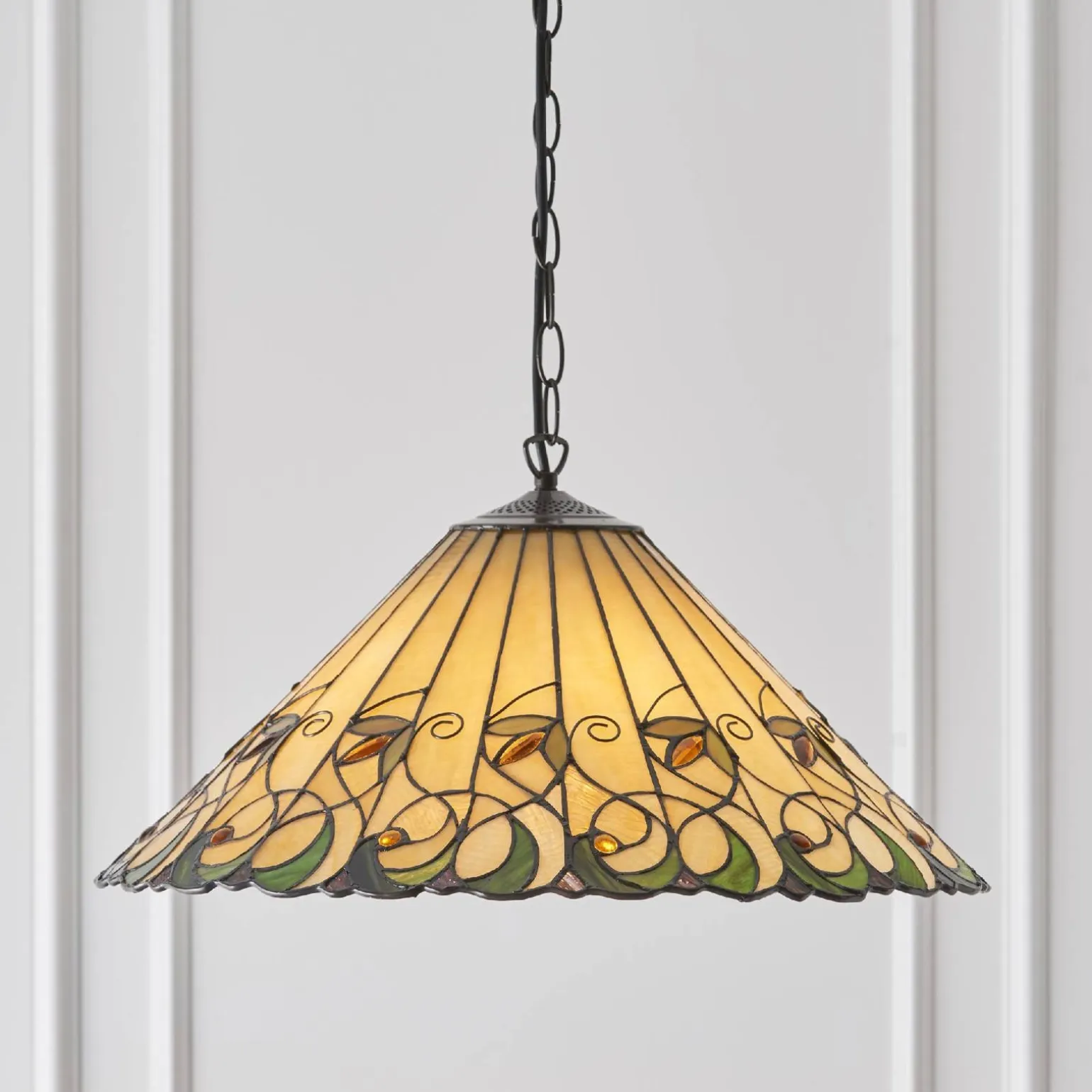 Wybierając lampę wiszącą Jamelia, inwestujesz w produkt renomowanej marki Tiffany, która od lat kojarzy się z luksusem i wyjątkowym designem. Każdy detal lampy został starannie przemyślany, co sprawia, że jest to nie tylko element dekoracyjny, ale także funkcjonalny. Dodatkowo, brak źródła światła w komplecie pozwala na dowolny wybór stylu żarówek, co wprowadza jeszcze więcej możliwości personalizacji.