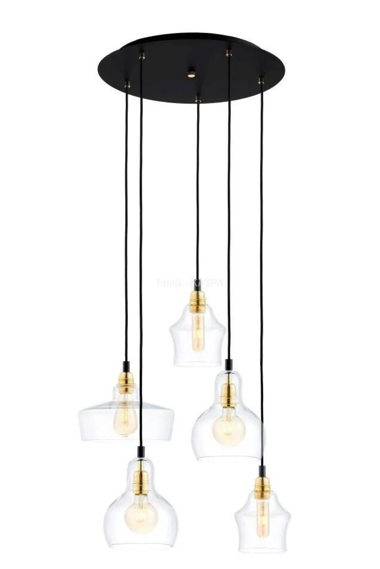 Wykonana z wysokiej jakości metalu oraz szkła, lampa wisząca LONGIS 5 GOLD wyróżnia się nie tylko estetyką, ale również solidnością.