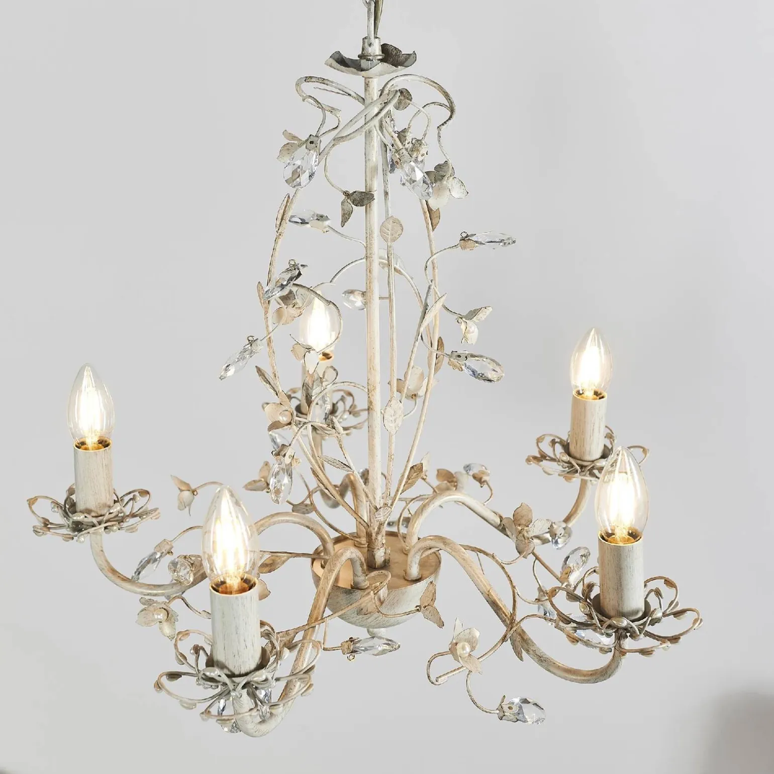 Zastosowana w Lampi Wiszącej Lullaby farba kremowa oraz bezbarwny/perłowy akryl nadają wyjątkowy wygląd, a jednocześnie zapewniają trwałość i łatwość w utrzymaniu. Lampa posiada pięć gniazd E14, co umożliwia użycie różnych źródeł światła, a maksymalna moc wynosząca 60W pozwala na intensywne oświetlenie przestrzeni. Dzięki strumieniowi świetlnemu o mocy 650 lumenów, każdy kąt pomieszczenia zyskuje odpowiednie doświetlenie.