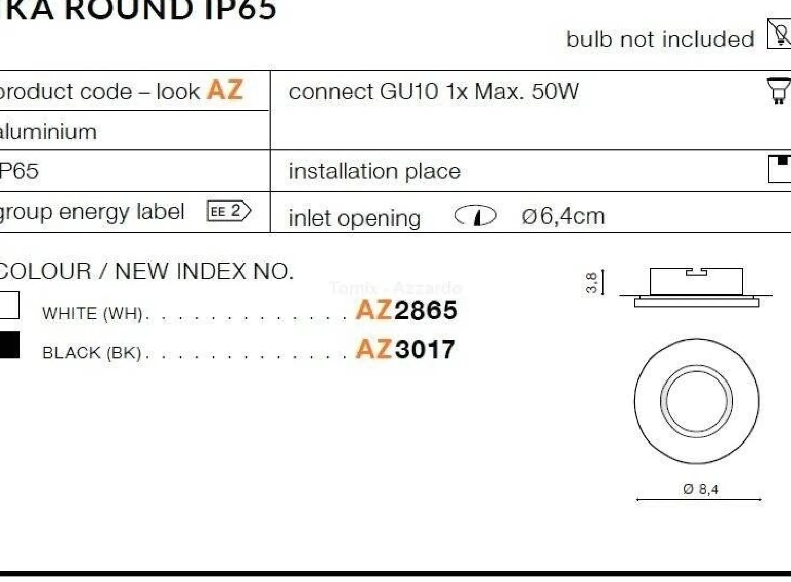 Model IKA ROUND IP65 charakteryzuje się wysokim stopniem ochrony IP65, co czyni go idealnym rozwiązaniem dla lamp wpuszczanych łazienkowych. Oznaczenie to wskazuje na odporność na działanie wody oraz pyłu, co jest niezwykle ważne w pomieszczeniach narażonych na wilgoć. Dzięki temu, możesz być pewny, że lampa nie tylko dobrze wygląda, ale także spełnia wszelkie normy bezpieczeństwa.