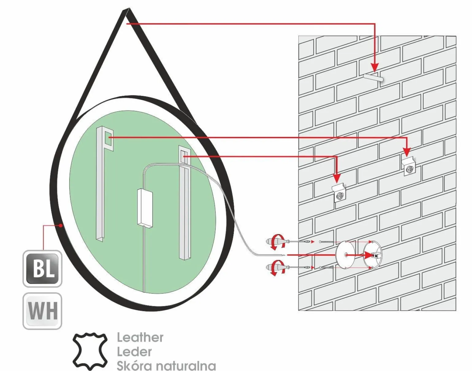 Lustro okrągłe TEXAS to wyjątkowy produkt od renomowanej marki MCJ, który łączy w sobie funkcjonalność z unikalnym designem. Jego elegancka, okrągła forma oraz możliwość montażu na skórzanym pasku sprawiają, że stanie się nie tylko narzędziem do codziennego użytku, ale także efektowną dekoracją wnętrza. Idealnie wpasuje się w różnorodne style aranżacyjne, od nowoczesnych, przez skandynawskie, aż po klasyczne. Dzięki zastosowaniu oświetlenia LED, lustro nie tylko optycznie powiększa przestrzeń, ale również dodaje jej ciepła i przytulności.
