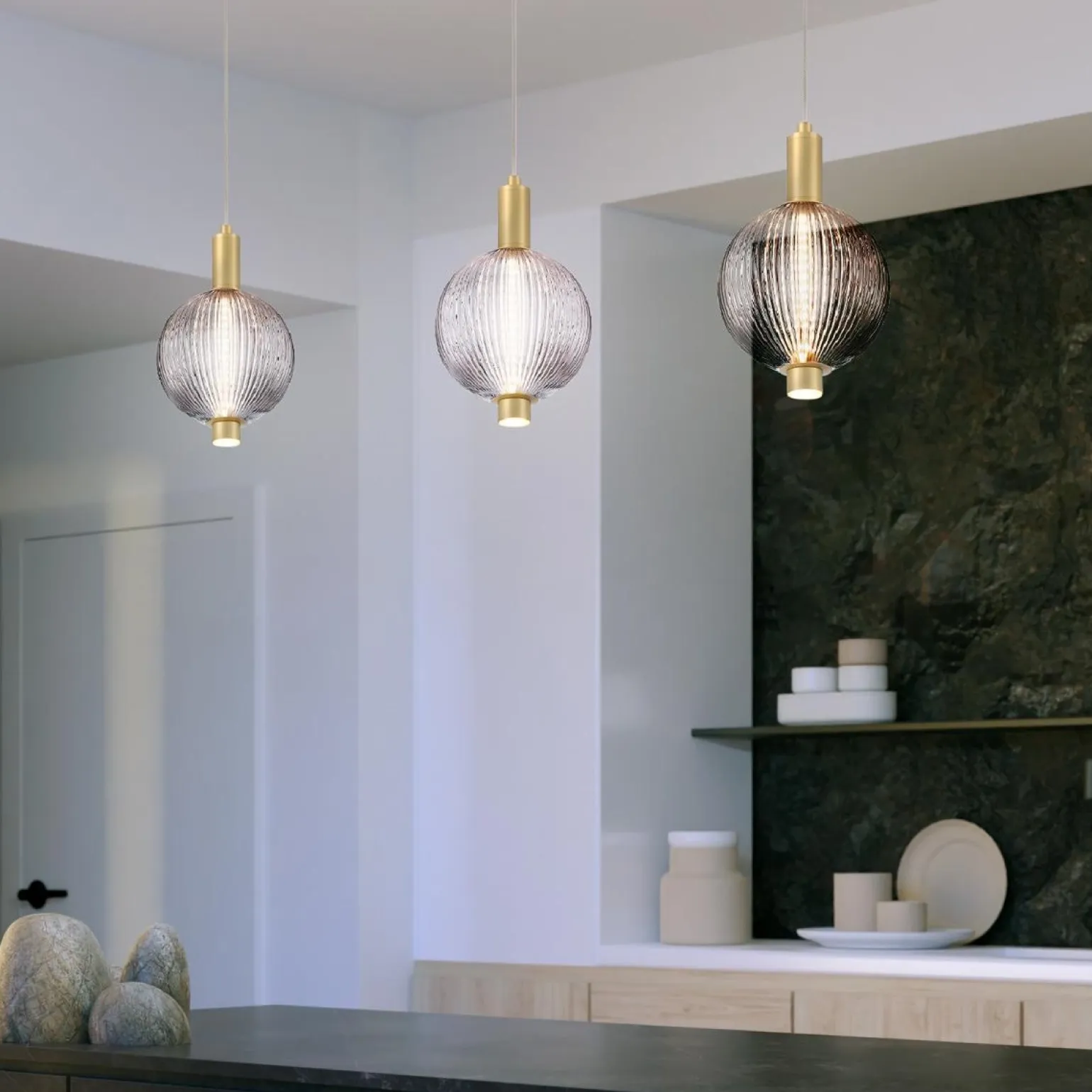 Mała lampa wisząca Palmas od marki Quintiesse to idealne rozwiązanie dla osób poszukujących efektownego oświetlenia do kuchni. Jej niezwykły design, łączący szczotkowane złoto z dymionym szkłem, nada każdemu wnętrzu elegancji i nowoczesności. Model QN-PALMAS-1MP-BG uświetni każdą aranżację, szczególnie w kuchniach w stylu glamour, gdzie detale mają ogromne znaczenie.