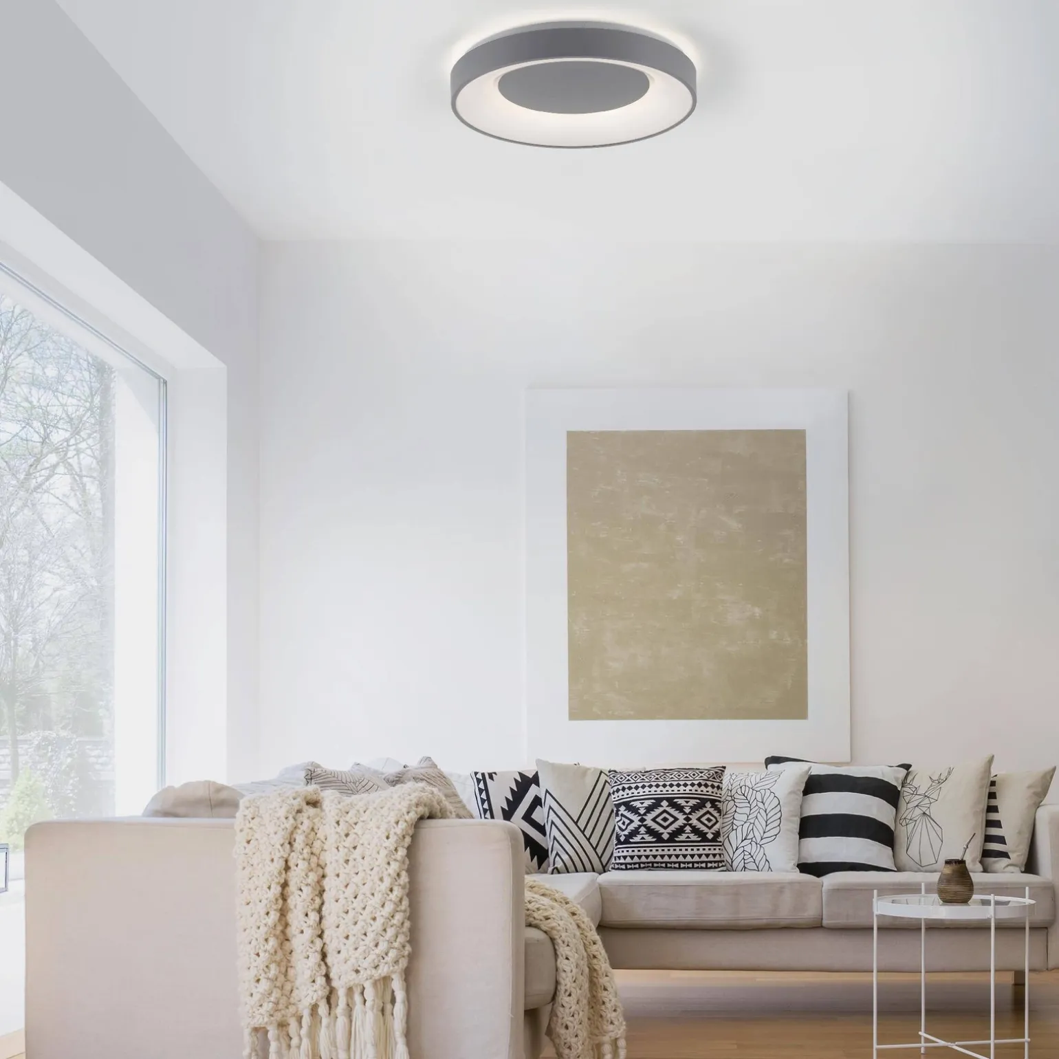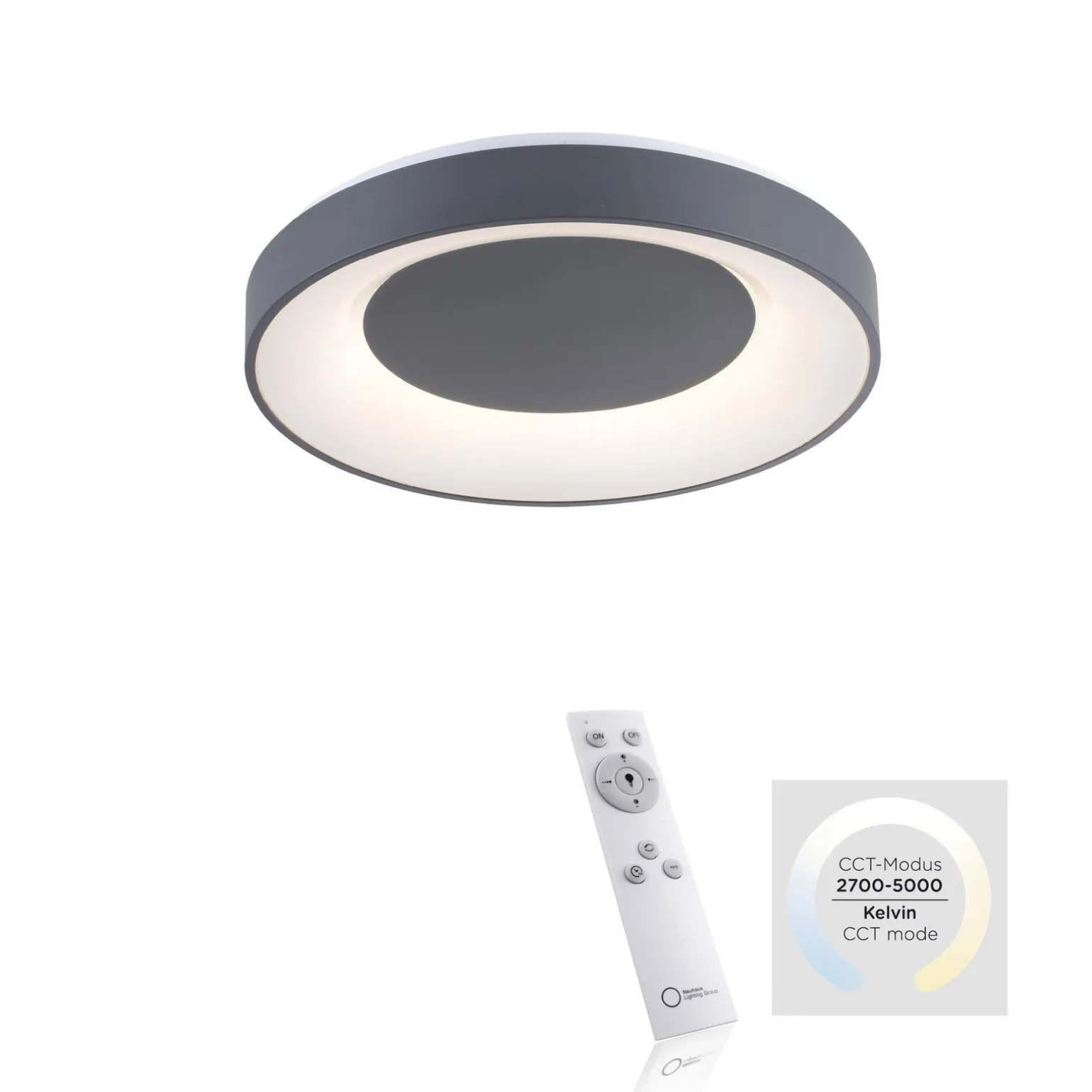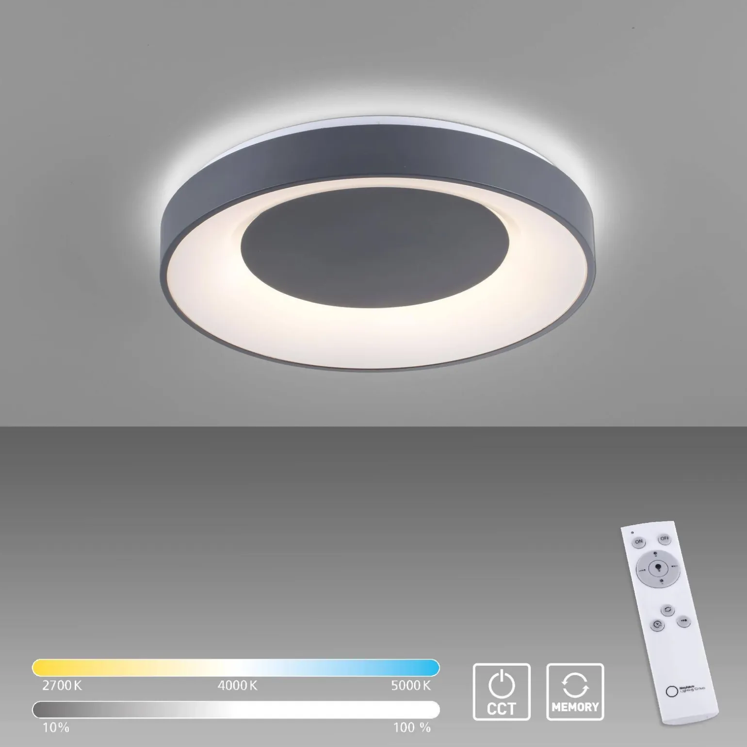 Plafon ANIKA wyróżnia się mocą do 26,5 W oraz strumieniem światła osiągającym imponujące 3300 lumenów. Zmienna barwa światła od 2700 do 5000 K sprawia, że jest to niezwykle uniwersalny produkt, który można dostosować do różnych potrzeb oraz nastrojów w pomieszczeniu. Dzięki przełącznikowi CCT oraz dołączonemu pilotowi, łatwo dostosujesz oświetlenie do swojego gustu, co czyni tę lampę idealnym rozwiązaniem do salonu czy jadalni.