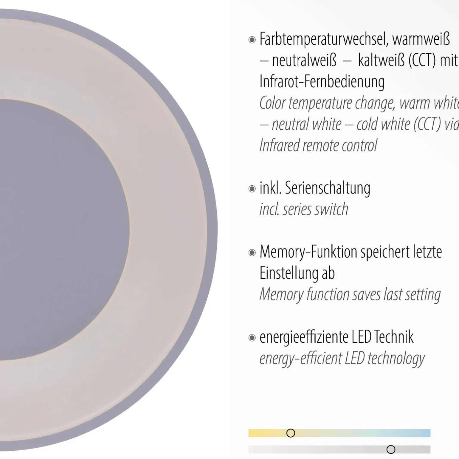 Różnorodność temperatur barwowych, które można ustawić w zakresie od 3000 K do 5000 K, czyni z plafonu ANIKA produkt niezwykle uniwersalny. Przy pomocy wbudowanego przełącznika CCT oraz pilota, użytkownik może łatwo dostosować oświetlenie do swojego nastroju oraz potrzeb. To jeden z wielu powodów, dla których ten plafon sufitowy nowoczesny cieszy się dużą popularnością wśród miłośników designu.