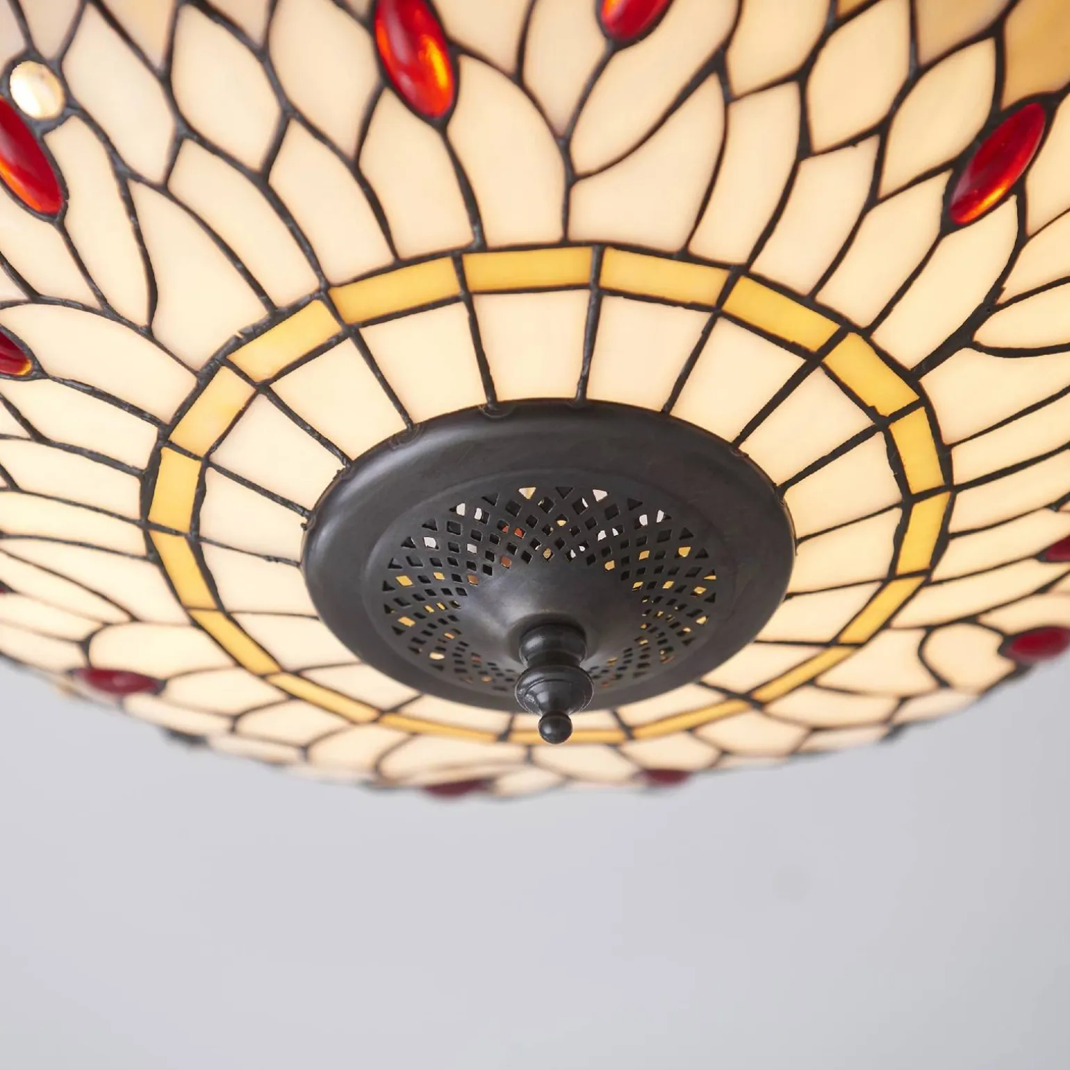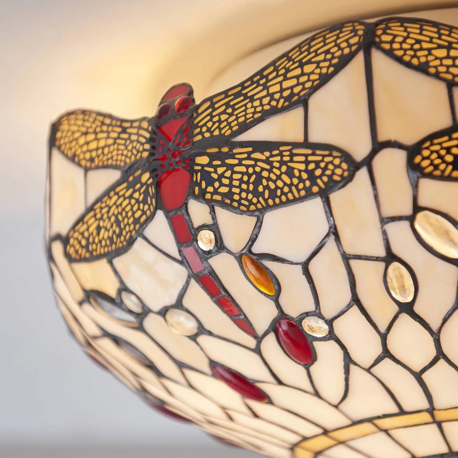 Plafon Dragonfly beige marki Tiffany (kod produktu: 70723) to wyjątkowy element oświetleniowy, który rozświetli każde wnętrze, dodając mu niepowtarzalnego charakteru. Ten plafon wewnętrzny idealnie sprawdzi się w różnych pomieszczeniach, takich jak salon, sypialnia czy jadalnia. Dzięki swojemu eleganckiemu designowi, inspirowanemu stylem Art Deco oraz Retro, stanie się nie tylko źródłem światła, ale również ozdobą każdego wnętrza.