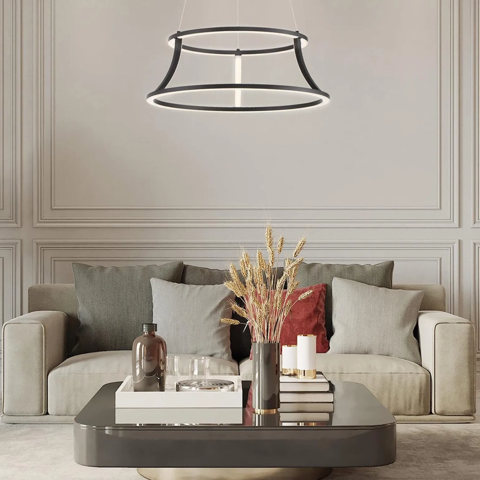 Żyrandol Cadoux od marki Quintiesse to idealne rozwiązanie dla osób szukających nowoczesnego i eleganckiego oświetlenia do swojego wnętrza. Jego minimalistyczny design w matowej czerni doskonale wpisuje się w trendy współczesnego wzornictwa. Dzięki zastosowaniu wysokiej jakości materiałów, takich jak aluminium i stal, żyrandol nie tylko prezentuje się stylowo, ale także jest niezwykle trwały.