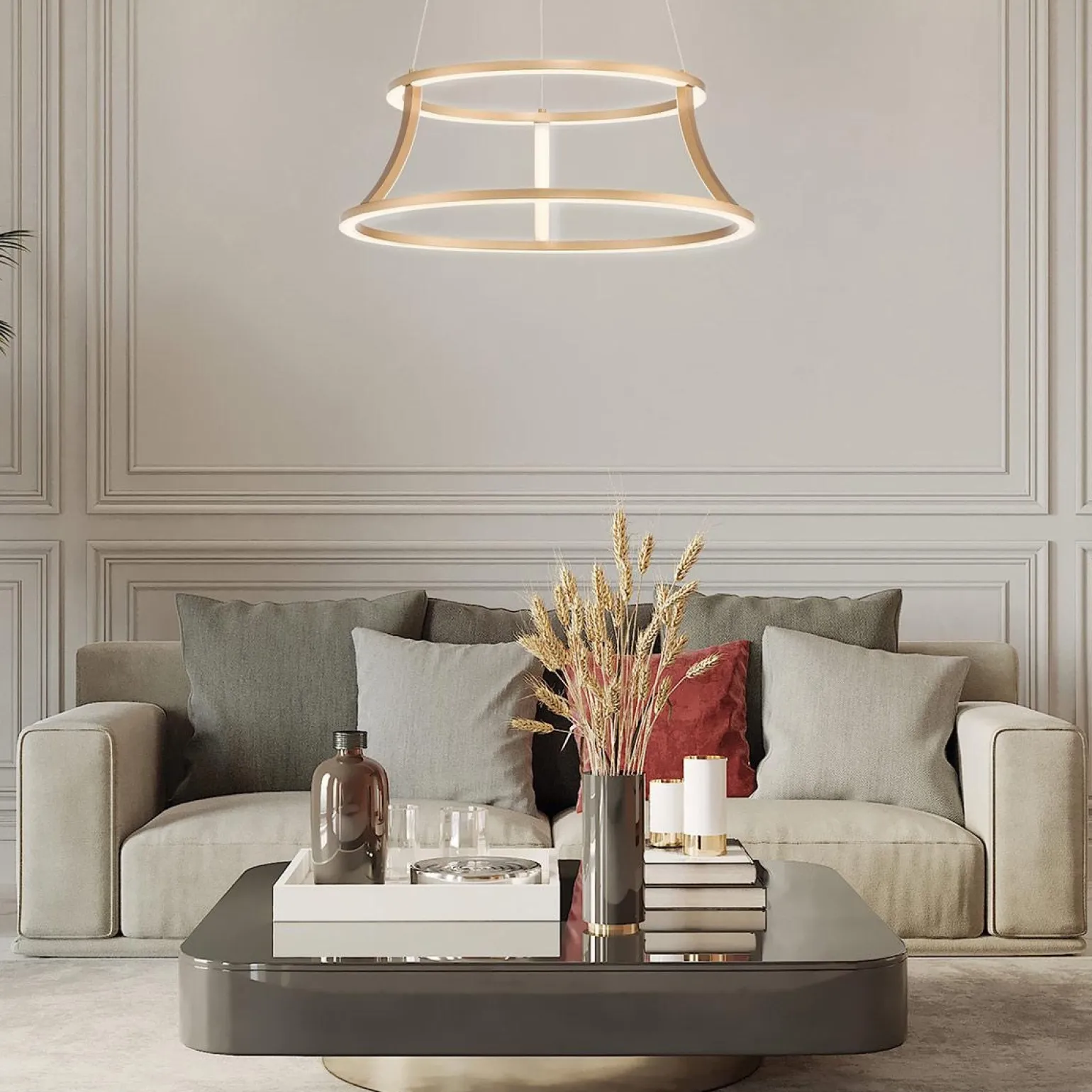 Jednym z kluczowych atutów żyrandola Cadoux jest jego moc wynosząca 54 W, co sprawia, że zapewnia on optymalne oświetlenie całego wnętrza. Zintegrowany trzonek LED emituje światło o strumieniu 1490 lumenów w ciepłej barwie (3000 K), co tworzy przytulną atmosferę, idealną do relaksu i spotkań z bliskimi. Kąt świecenia wynoszący 360° sprawia, że żyrandol Cadoux doskonale oświetla każdy zakątek pomieszczenia, a jego nowoczesny styl wkomponowuje się w różnorodne aranżacje wnętrz.