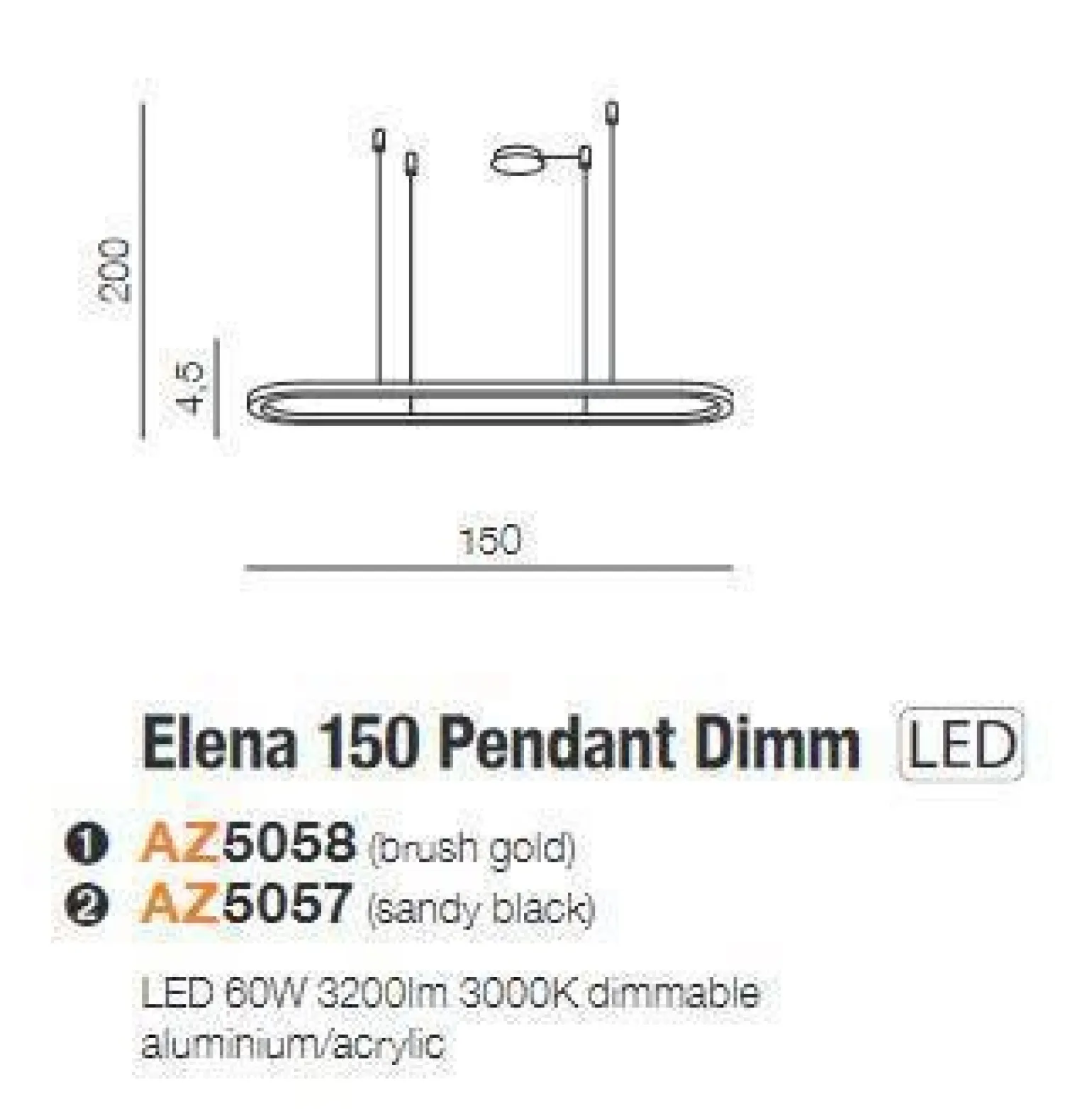 Żyrandol ELENA 150 DIMM czarny (AZ5057) marki Azzardo to idealna propozycja dla osób poszukujących nowoczesnych lamp wiszących do swojego wnętrza. Jego elegancki design oraz funkcjonalność sprawiają, że doskonale sprawdzi się zarówno w biurze, jak i w salonie czy jadalni. Wykonany z najwyższej jakości materiałów, takich jak aluminium i akryl, stanowi nie tylko źródło światła, ale również efektowny element dekoracyjny.